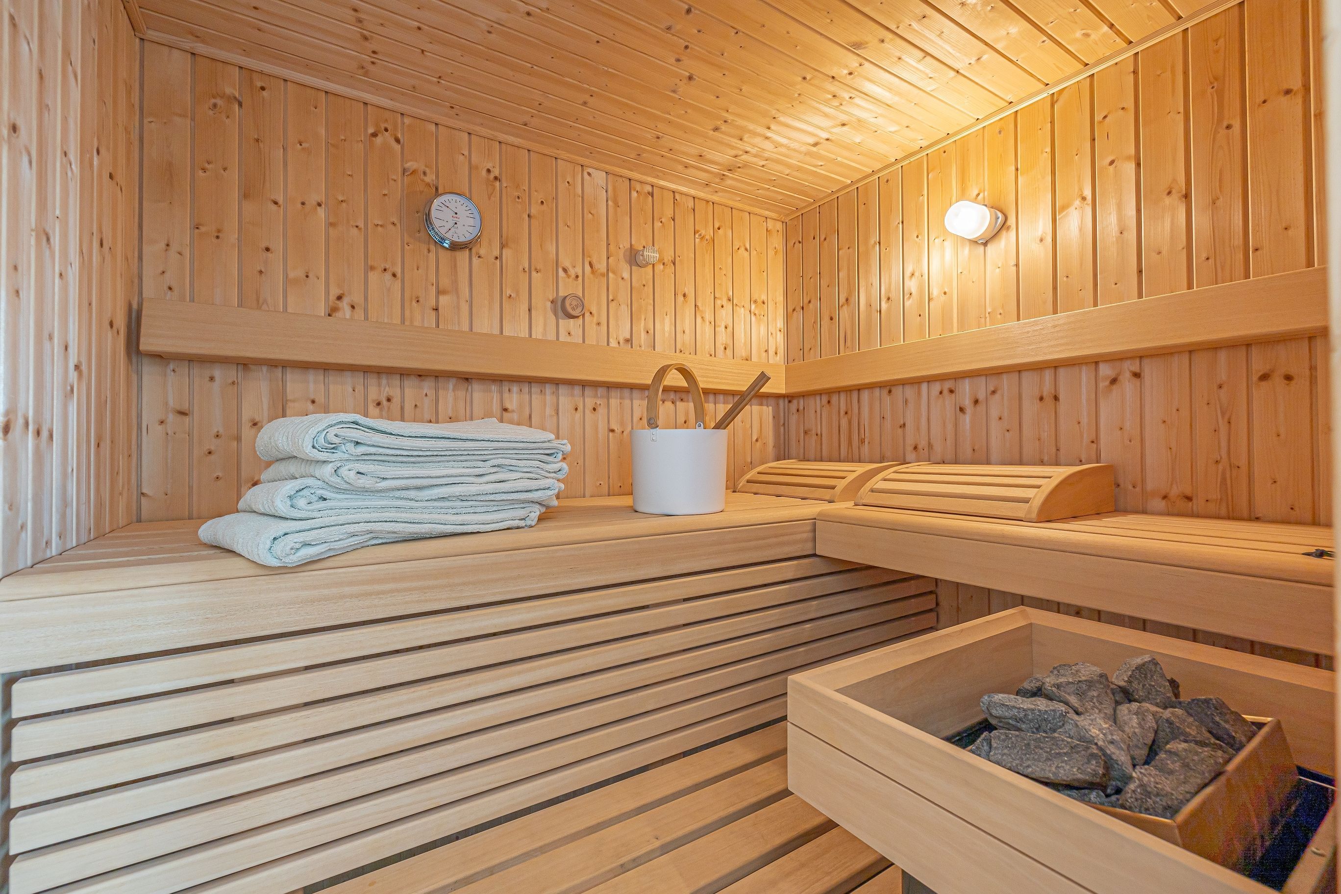 Jede Wohnung ist bestens ausgestattet und bietet höchsten Komfort: Entspannen Sie auf Ihrem privaten Balkon, machen Sie es sich am Kamin gemütlich, genießen Sie die wohltuende Wärme der finnischen Sauna und nutzen Sie die Waschmaschine und den Trockner für zusätzlichen Komfort.