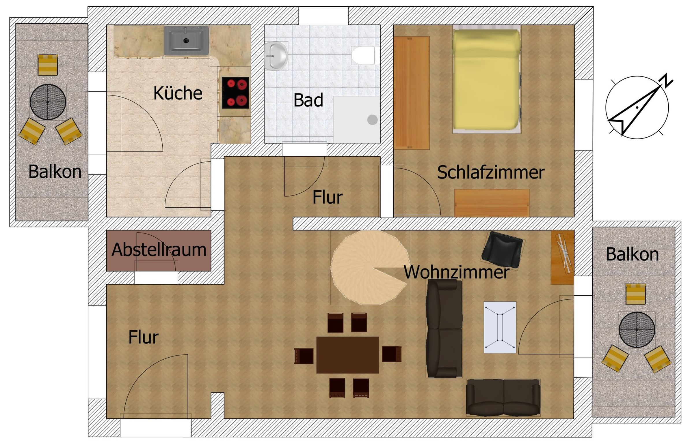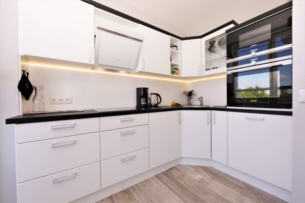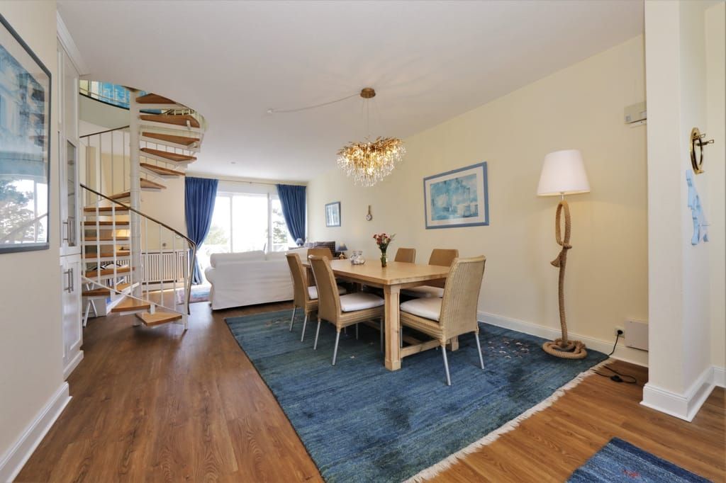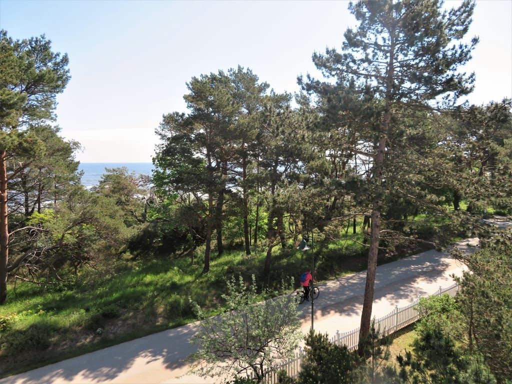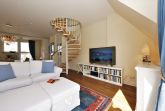 Ein Highlight dieser Wohnung sind die beiden Balkone. Der größere Balkon ist vom Wohnzimmer begehbar und bietet durch die Bäume auf der Düne hindurch einen Blick auf die Ostsee. Das großzügige Wohnzimmer verfügt über eine komfortable Sitzecke mit Flachbildfernseher sowie einen großen Esstisch. Die separate, vollausgestattete Küche ist mit Geschirrspüler, großem Kühlschrank mit Gefriermöglichkeit, Backofen, Mikrowelle und Waschmaschine (gg. Gebühr) ausgestattet. Von der Küche aus gelangt man auf den sonnigen Südbalkon zum Hof des Hauses.