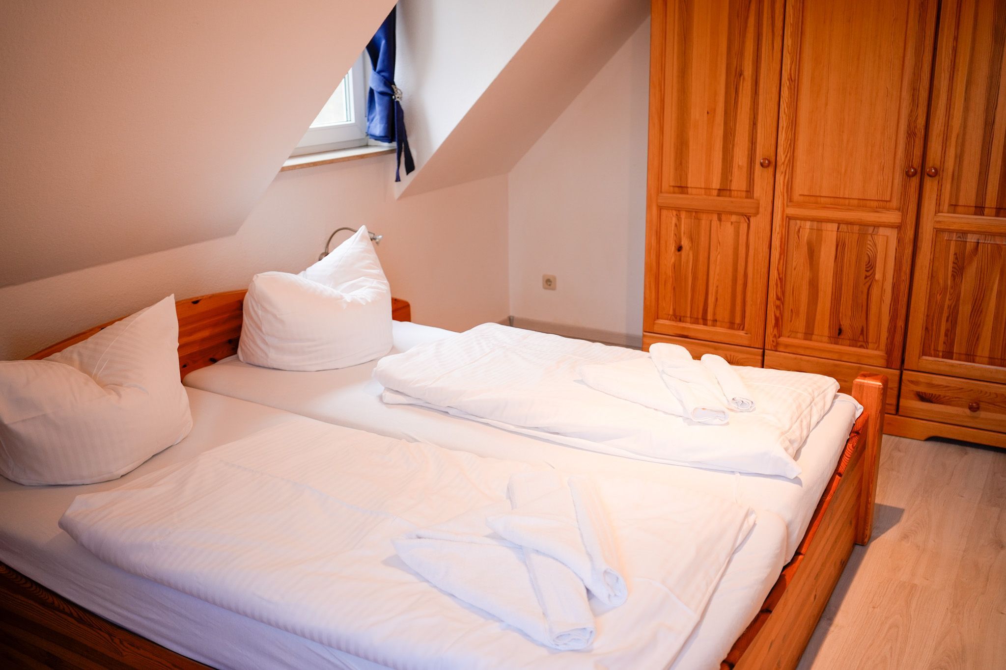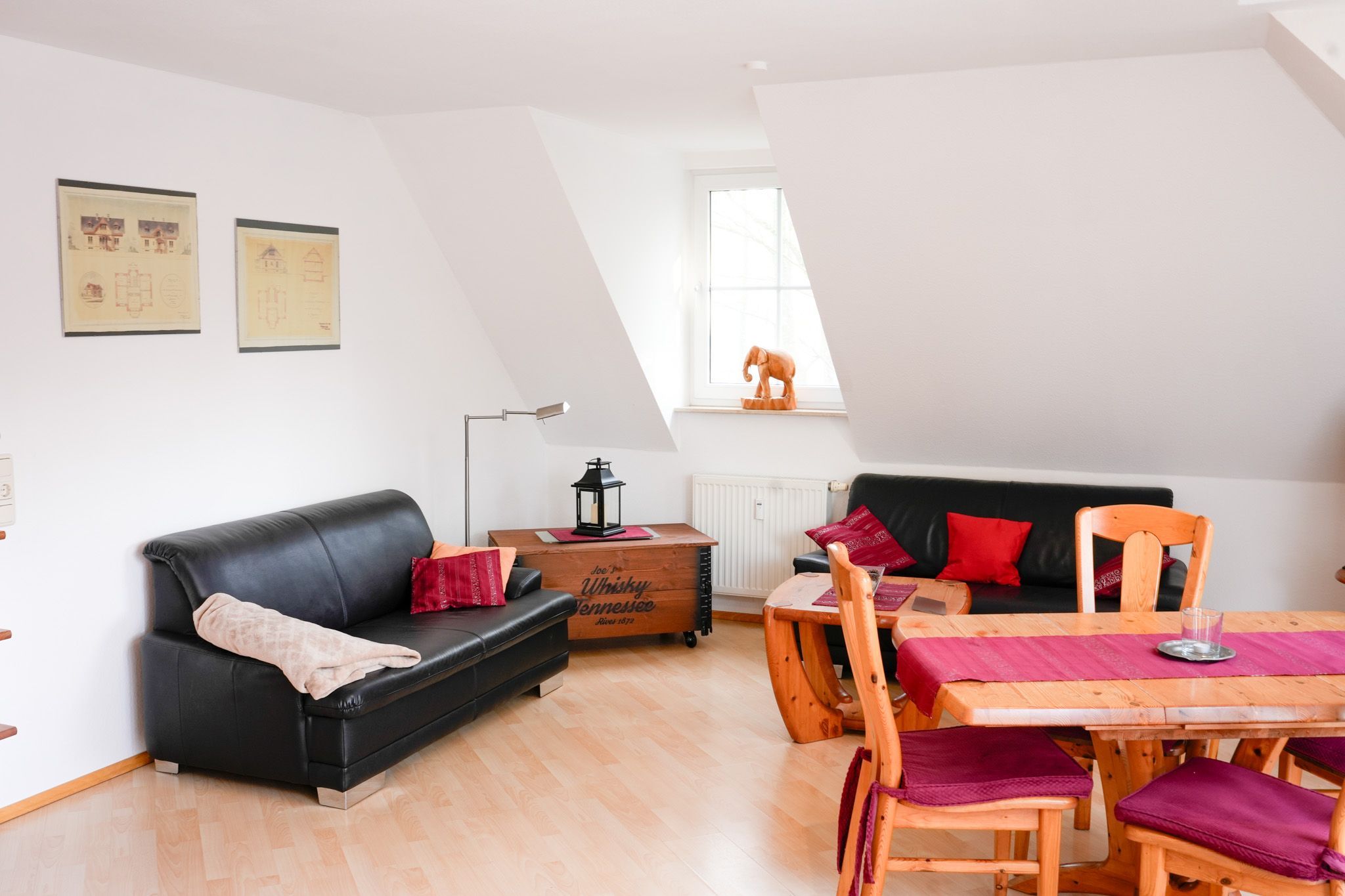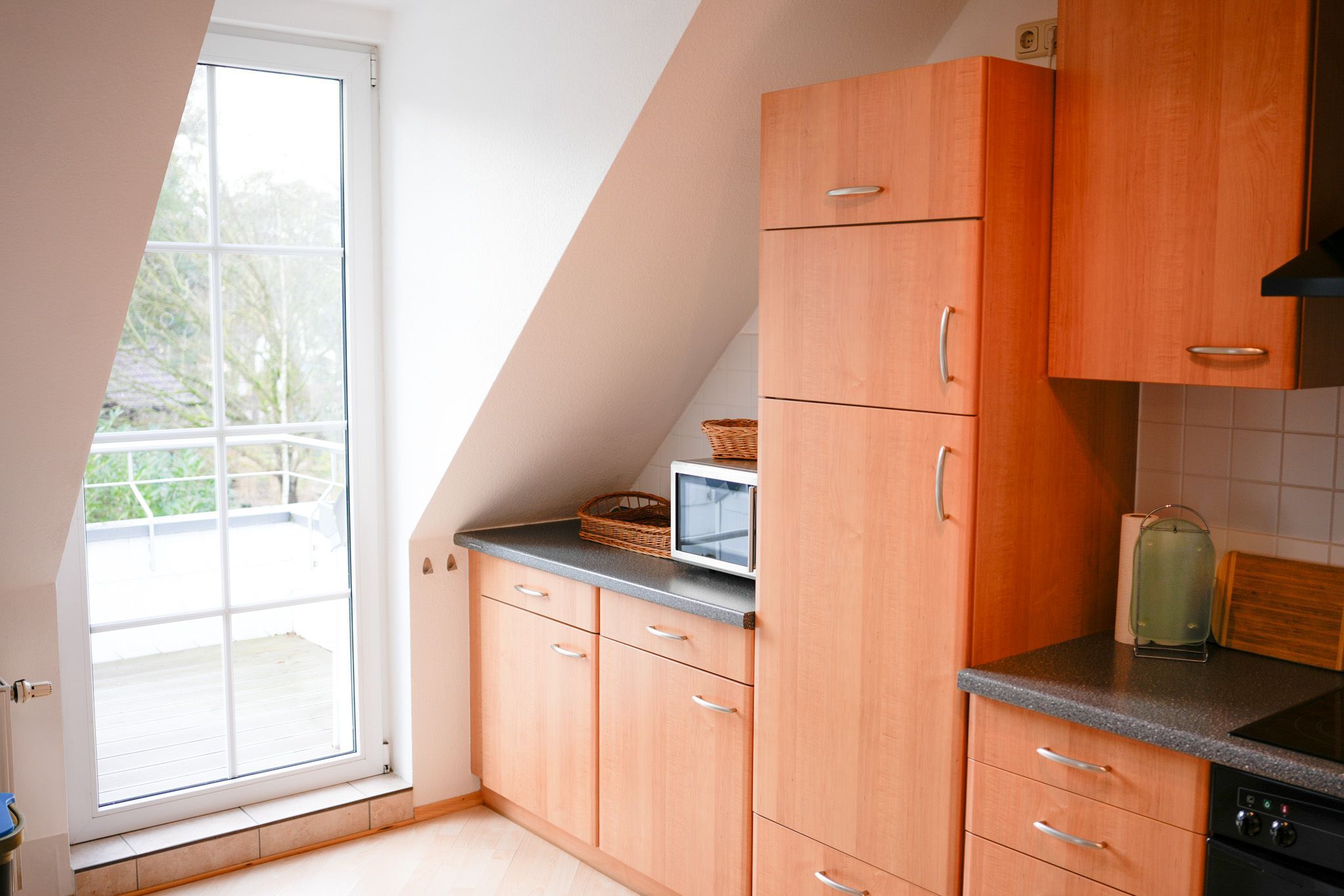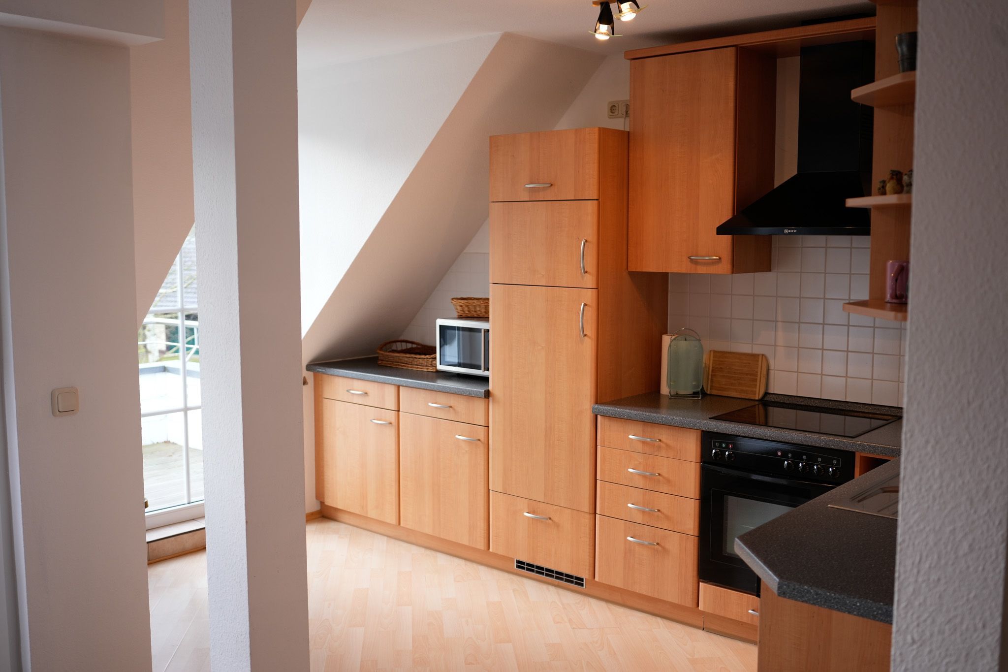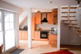 Die Fewo Gabriele ist hell, da sie nach Süden ausgerichtet und mit vielen Fenstern und einem Balkon ausgestattet ist. W-LAN / Internet ist kostenlos nutzbar.. In der unteren Ebene befinden sich eine voll ausgestattete Einbauküche, ein gemütlicher Wohn-/Essbereich, das untere Schlafzimmer mit Doppelbett und das Badezimmer mit Fußbodenheizung und Dusche. Mittels Holztreppe gelangt man in die Galerie. Dort befindet sich das zweite Schlafzimmer mit Doppelbett. Der Balkon ist mit Gartenmöbeln ausgestattet.