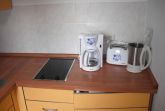Wohnzimmer mit Flachbildschirm mit separater Küche (mit Geschirrspüler, 2-Plattenherd, Kaffeemaschine, Toaster, Wasserkocher)