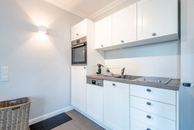 Die offene, vollausgestattete Küche bietet alles, was das Herz begehrt. Ob ein schnelles Frühstück vor einem Tag am Strand oder ein romantisches Abendessen – hier macht Kochen Freude. Hochwertige Küchengeräte und viel Platz zur Zubereitung machen diese Küche zu einem Highlight der Wohnung.