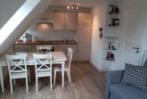 Die schöne und gemütliche Ferienwohnung Matzes Koje im 1. Obergeschoss links bietet Platz für 2 Personen und gerne auch für ihren Hund auf 30qm. Sie ist eine von zwei Wohneinheiten im Fluken-Hüüs. Die offene Einbauküche verfügt über eine Geschirrspülmaschine, einen Backofen und einen Kühlschrank mit Gefrierfach. Der gemütliche und helle Wohn-Essbereich lädt zum Verweilen ein, ausgestattet mit einem Flatscreen TV. Im Schlafzimmer befindet sich ein Doppelbett 1,60x2,00m mit einem offenen Fußende und einem Kleiderschrank. Das Bad verfügt über ein WC, Dusche und ein Waschbecken.