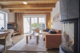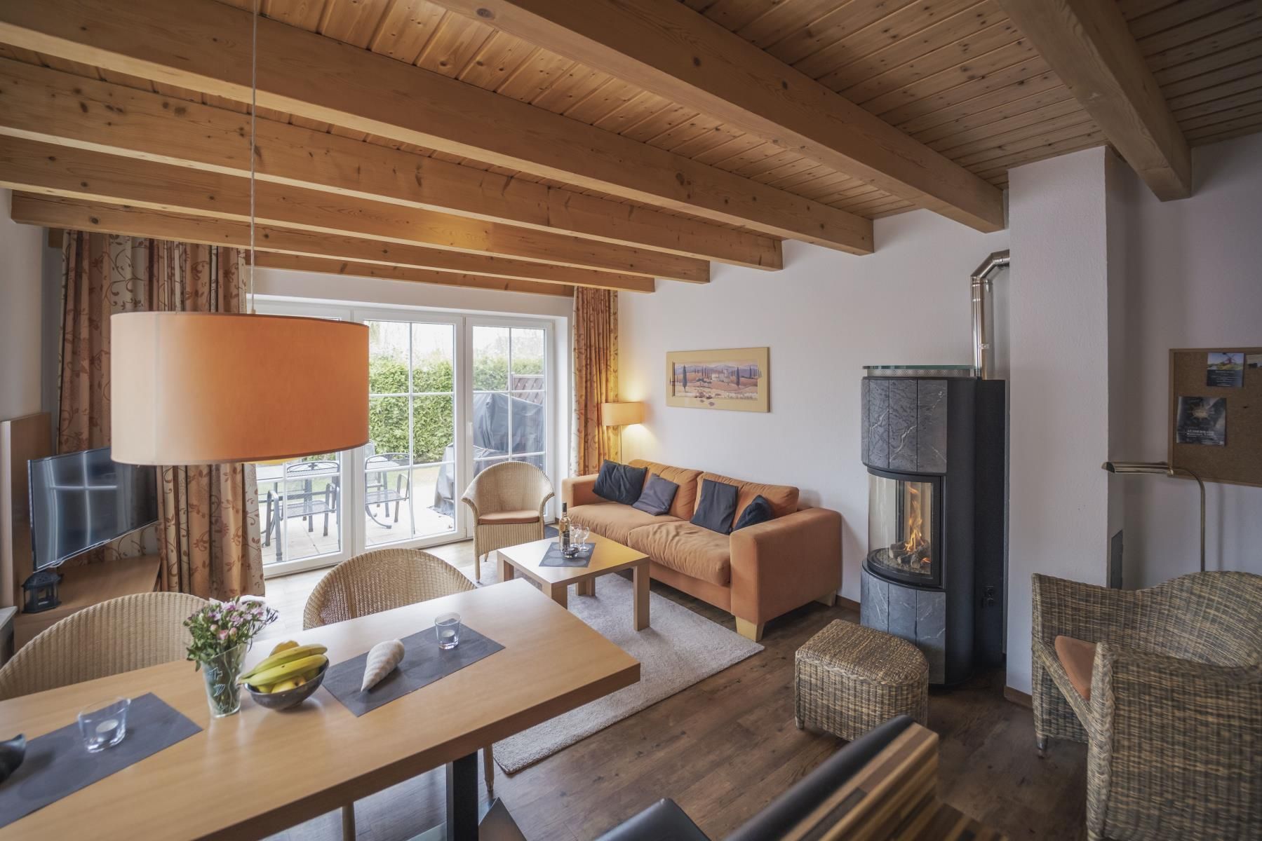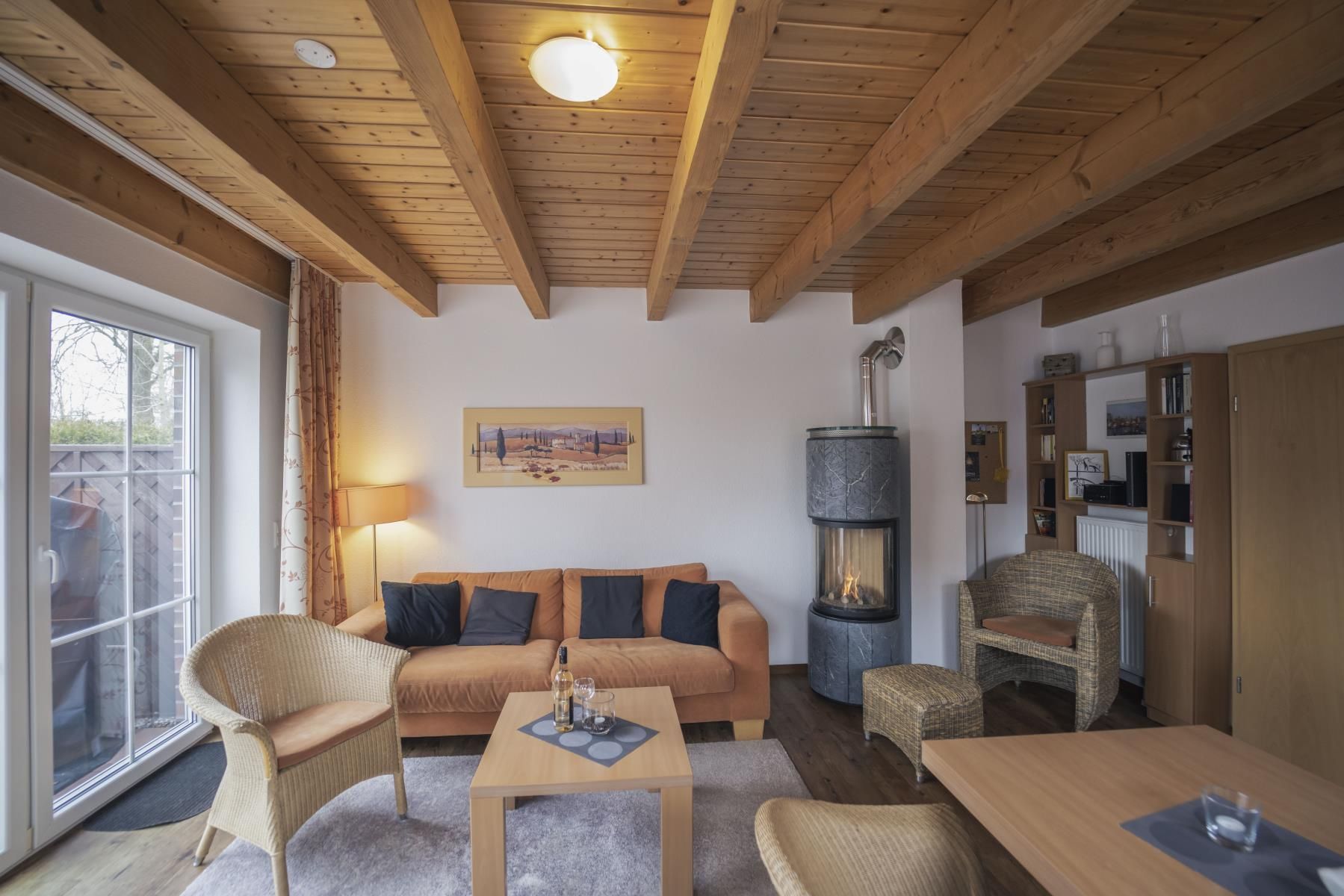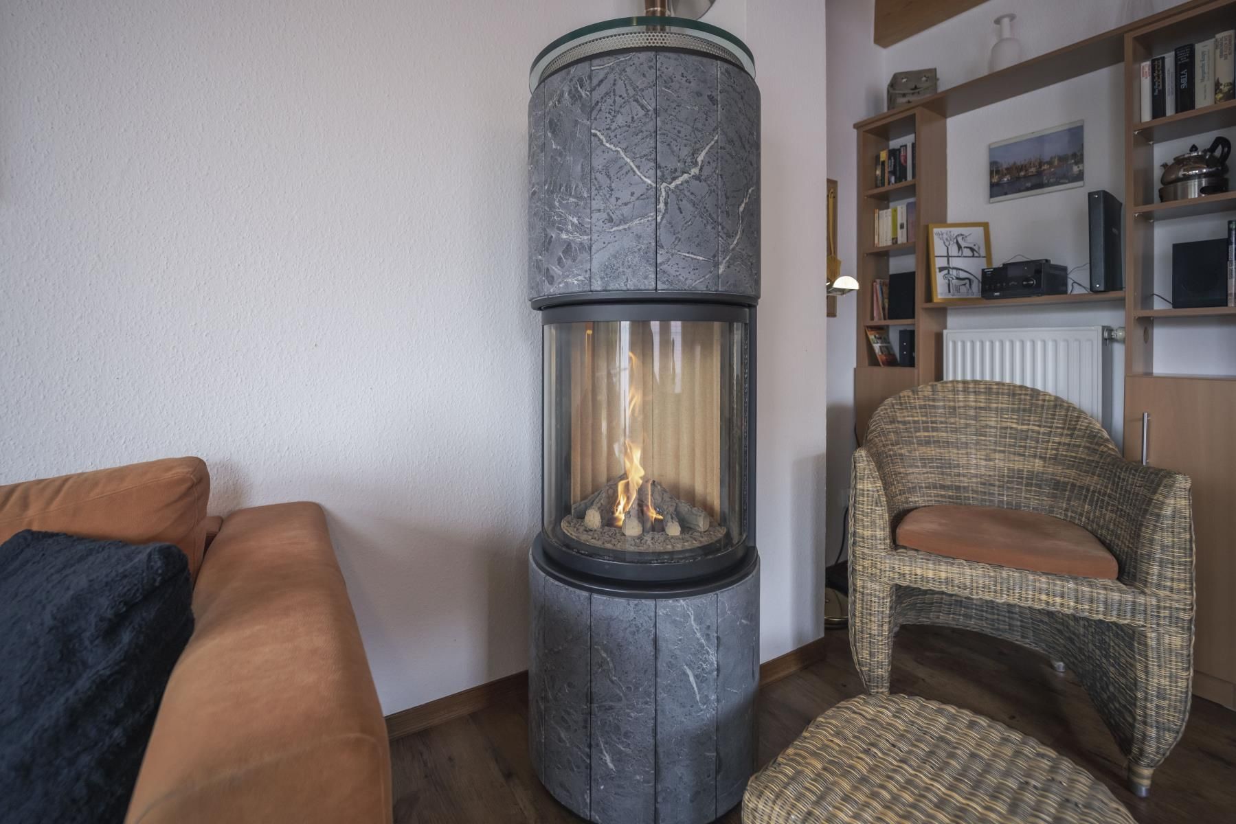 gemütliches Wohnzimmer mit einem Gas-Kaminofen (Sie regulieren die Flamme per Fernbedienung), hinter
