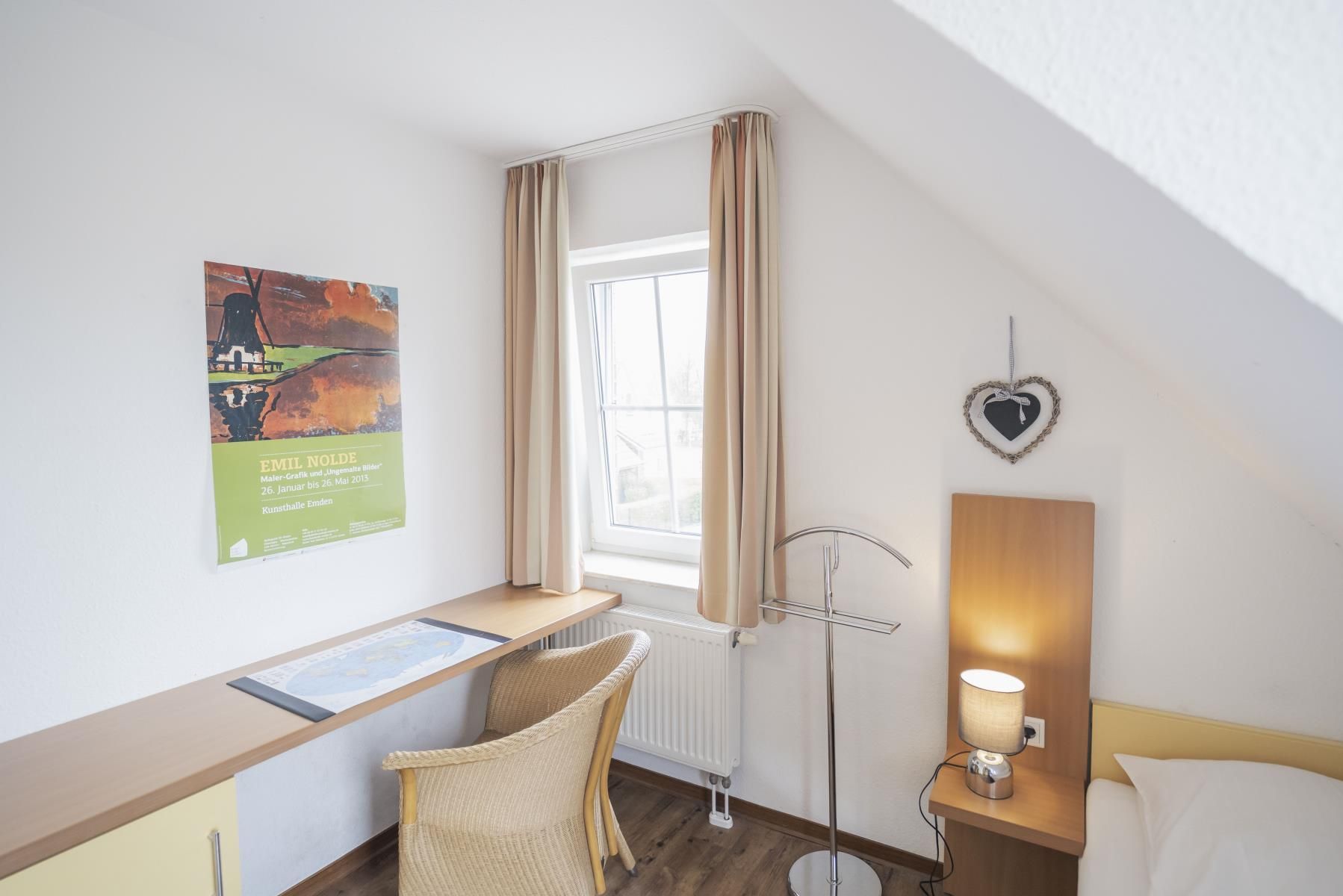 Im Obergeschoss zwei freundlich eingerichtete Schlafzimmer (eins mit Doppelbett, eins mit zwei