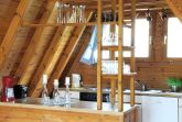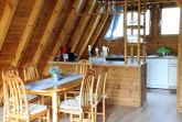 Rustikale Finnhütte mit großzügigem Wohn-/Esszimmer mit offener Küche und Terrassenzugang.