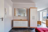 Das moderne Badezimmer ist mit einer Dusche ausgestattet. Vom eigenen Balkon genießen Sie den Blick in den gemeinschaftlichen Gartenbereich. Im Erdgeschoss steht ein Gemeinschaftsraum mit Tischkicker, Airhockey und Flachbild-TV zur Verfügung.