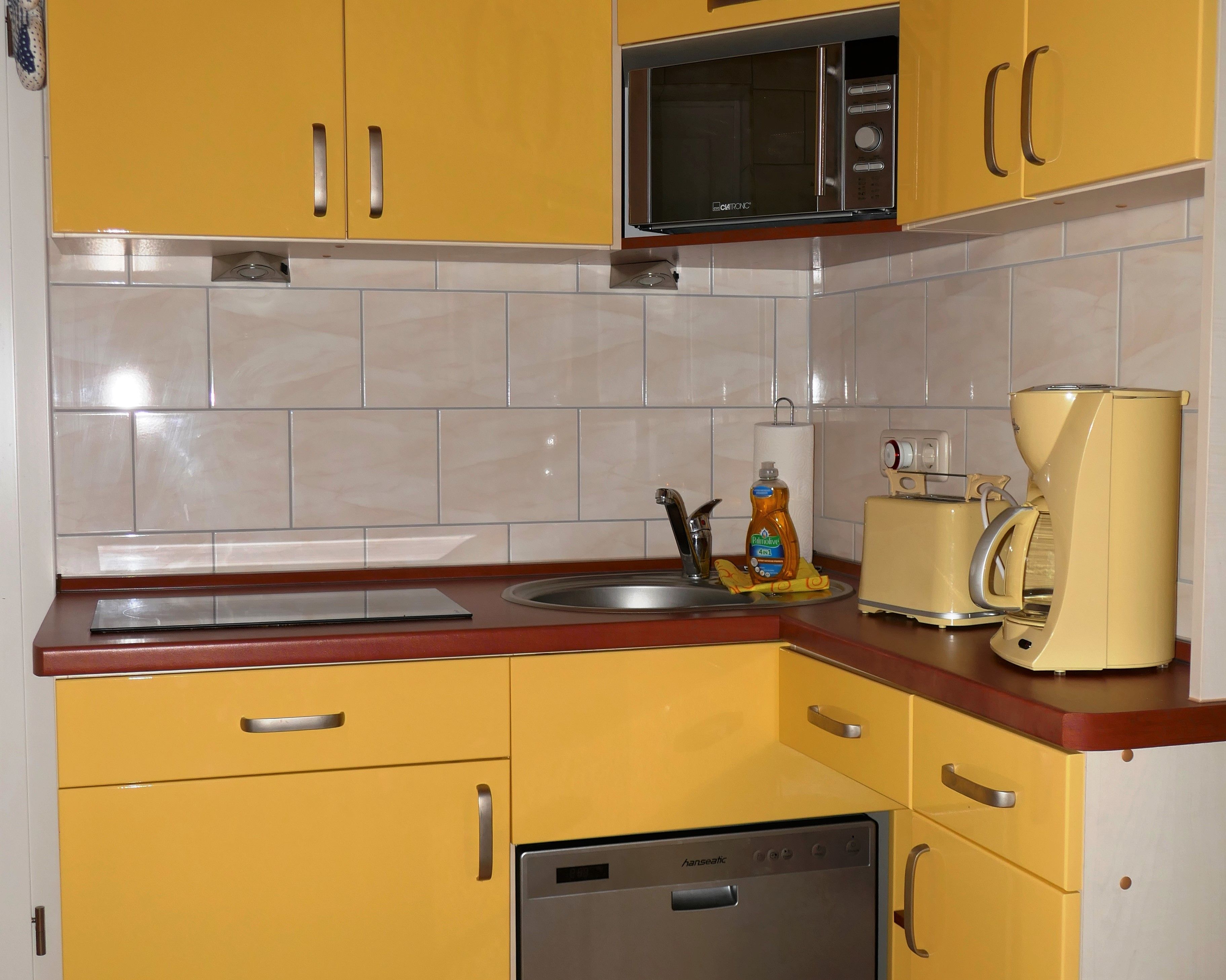 Die moderne und funktionale Küche verfügt über einen Ceranherd, eine Spülmaschine, Kaffeemaschine, Wasserkocher, Mikrowelle mit Aufbackfunktion, Toaster und Kühlschrank. Das Bad ist mit einem elektrischen Badheizer, Dusche/WC und Haartrockner ausgestattet. Für die kleinen Gäste steht kostenfrei ein Kinderreisebett, ein Hochstuhl, ein Toilettensitz und Kinderbesteck zur Verfügung.