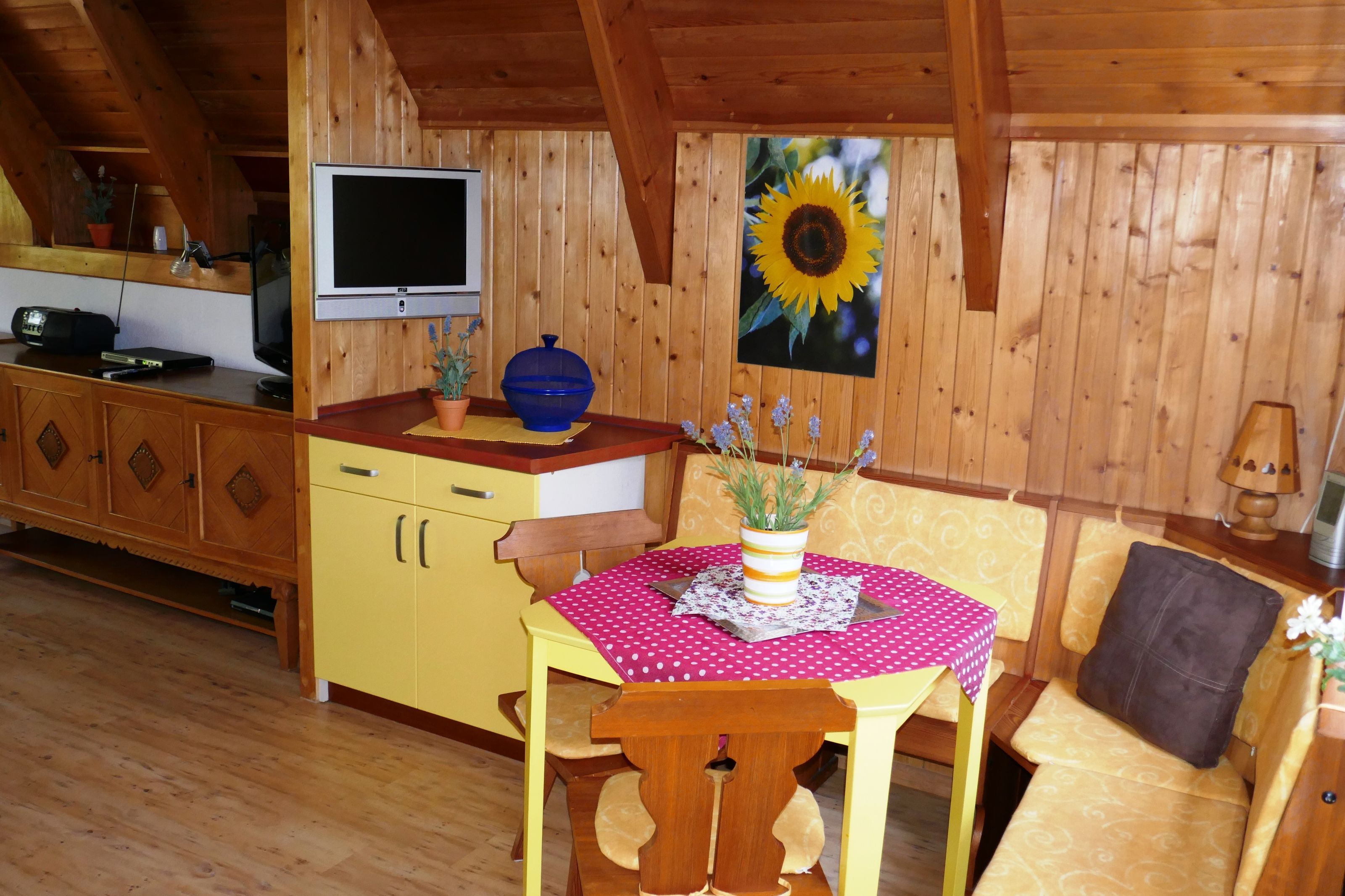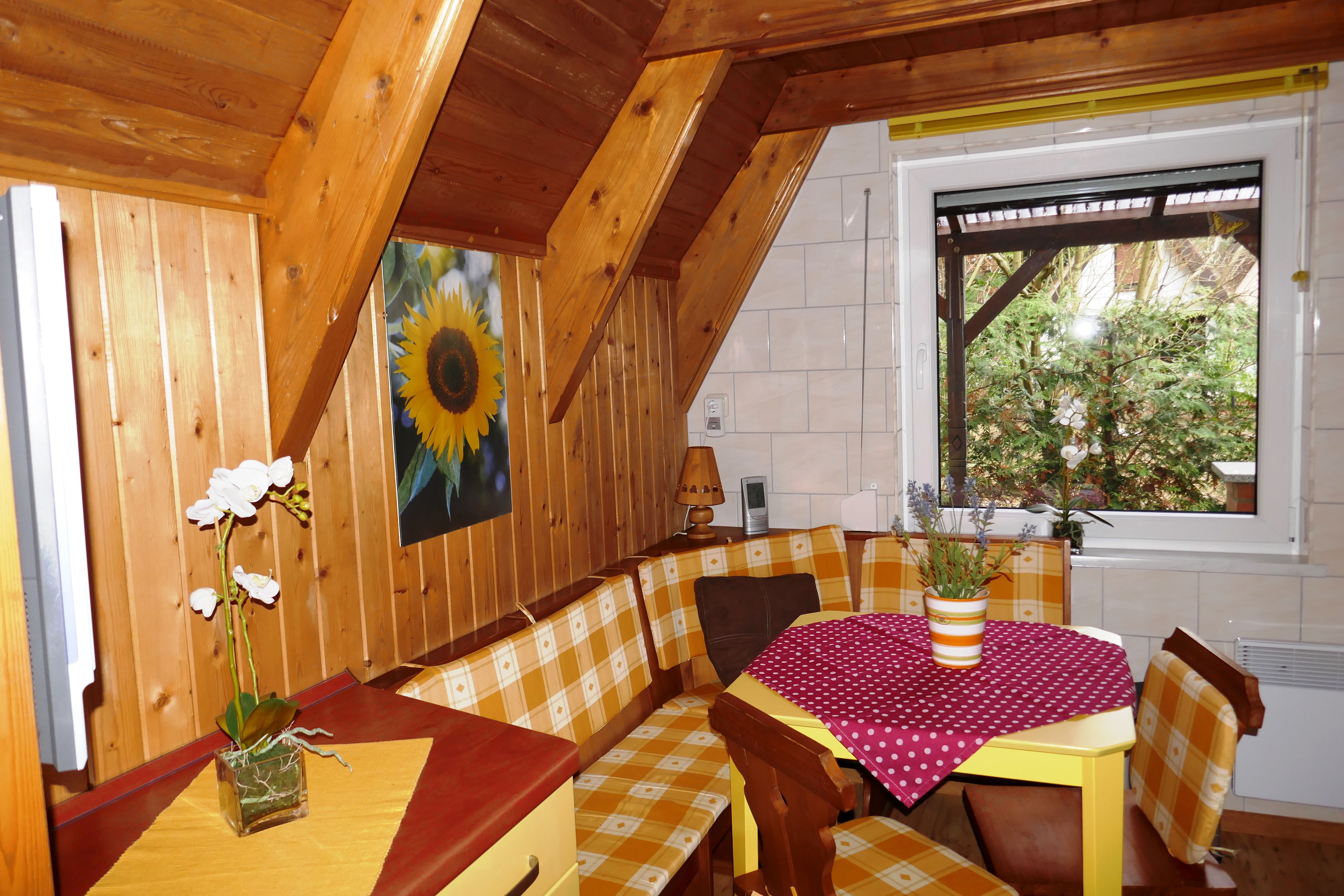 Die gemütlich eingerichtete Finnhütte verfügt im Erdgeschoss über eine offene Küche. Sat-TV, DVD-Player und Radio sorgen nicht nur bei schlechtem Wetter für Abwechslung. W-Lan steht Ihnen kostenfrei zur Verfügung.