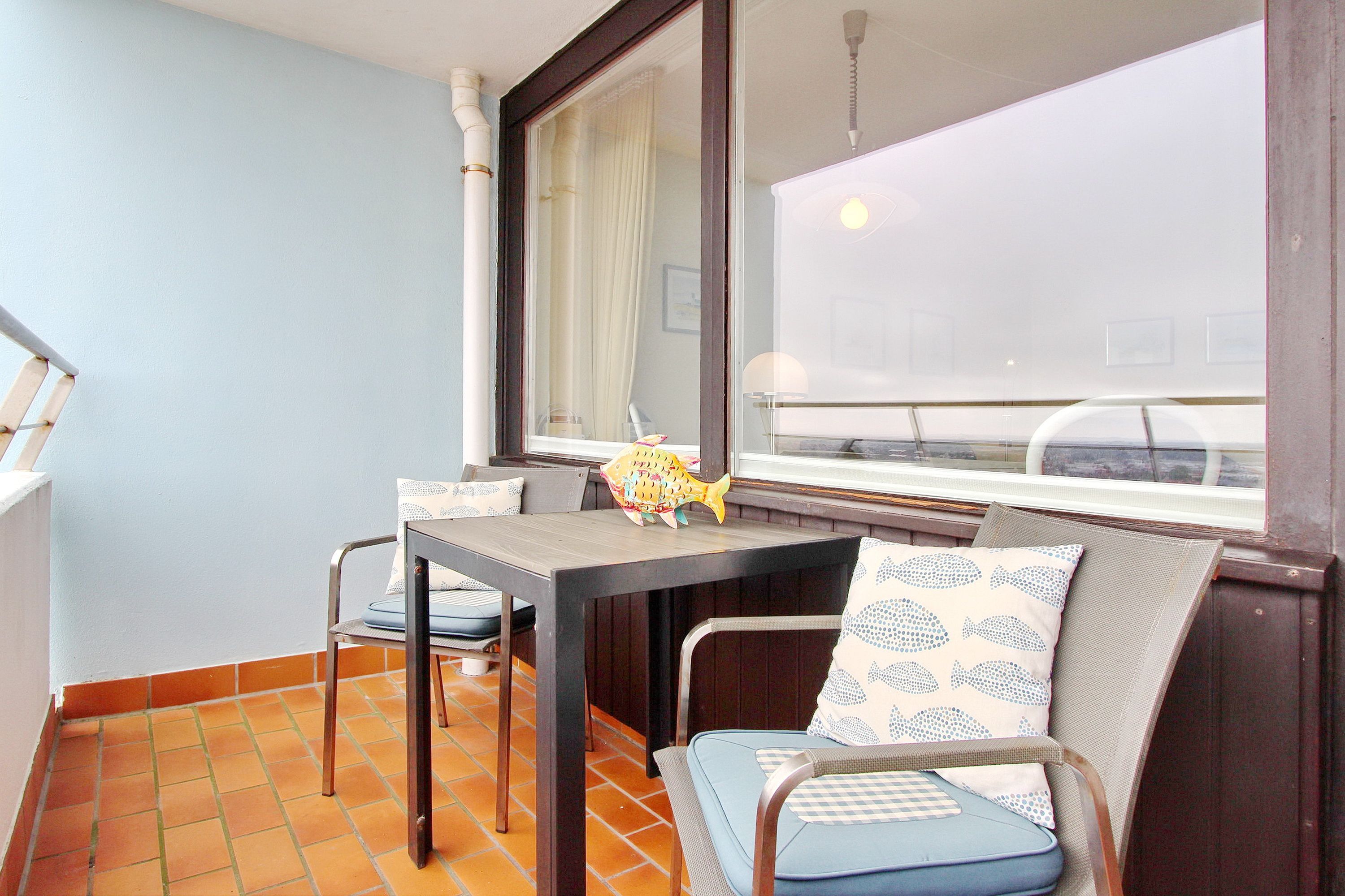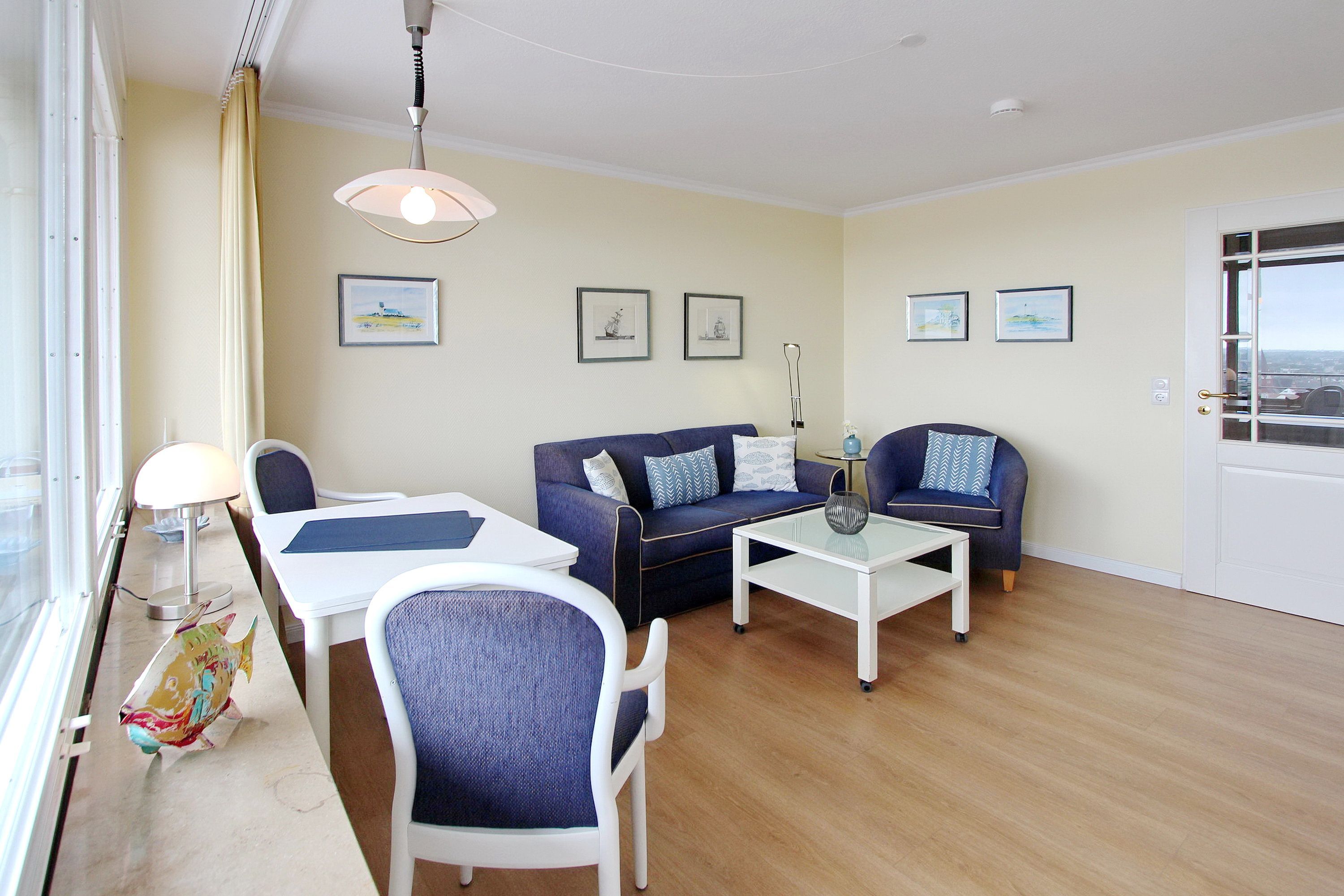Diese Ferienwohnung befindet sich in der 11. Etage des Haus Metropols und hat einen herrlichen Weitblick über die Insel und Stadt, bei klarem Wetter auf das nordfriesische Wattenmeer bis zum Festland. Der kombinierte Wohn-/Schlafraum mit vorgelagertem Ostbalkon (Balkonmöbel mit Auflagen sind vorhanden) ist ausgestattet mit Einzelschrankbetten, einem Essplatz mit 2 Stühlen, einer Sitzgruppe und einem Sessel. Das Badezimmer hat eine Dusche mit flachem Einstieg. In der Einbauküche mit Mikrowelle, Ceranfeld und Geschirrspüler im Flur können Sie sich selbst verpflegen. Zur technischen Ausstattung der Wohnung gehört: ein Flachbildfernseher mit integriertem DVD Spieler und ein Radio. Ein freies WLAN Netzwerk (WEG Haus Metropol - Passwortfrei - ohne Gewähr) steht ihnen kostenfrei zur Verfügung. Diese Nichtraucherwohnung hat eine Größe von ca. 30 m².