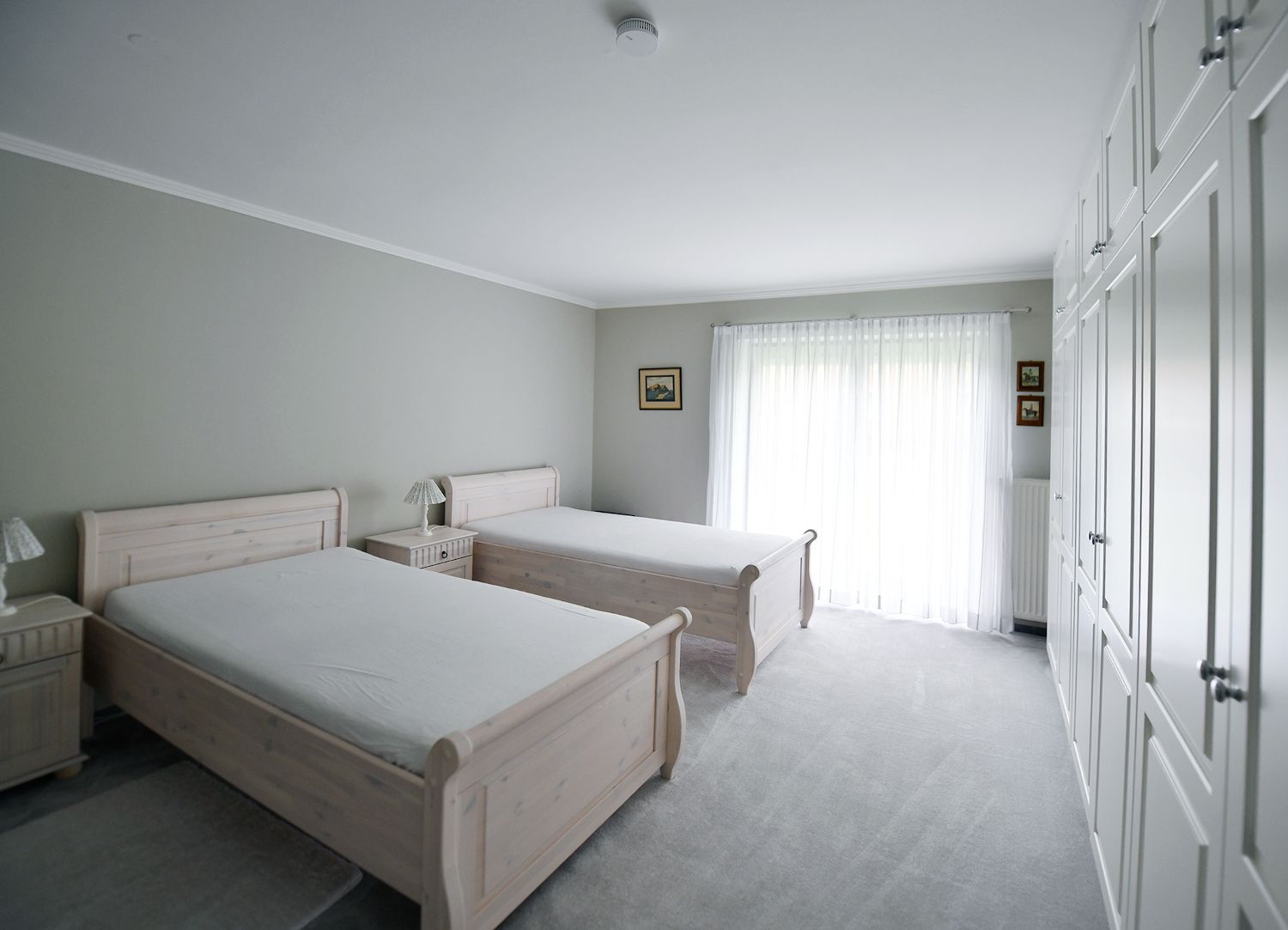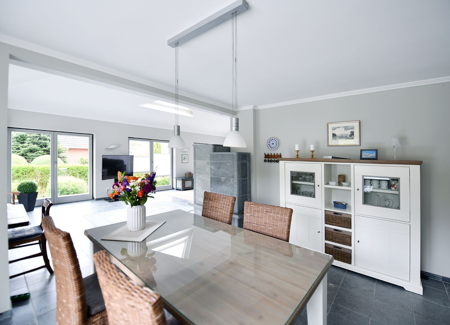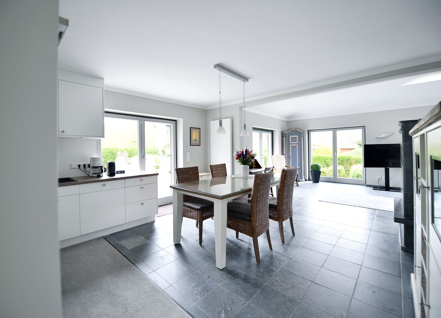 Der großzügig geschnittene Bungalow bitte Platz für 2 bis 4 Personen. Bodentiefe Fenster bieten viel Helligkeit und einen schönen Blick in den gepflegten Garten. Ruhige Lage, jedoch sind Zentrum und Strand in wenigen Minuten zu Fuß erreichbar. Ein Carport ist auf dem Grundstück, Ihre Fahrräder können im Gartenhaus untergestellt werden.