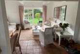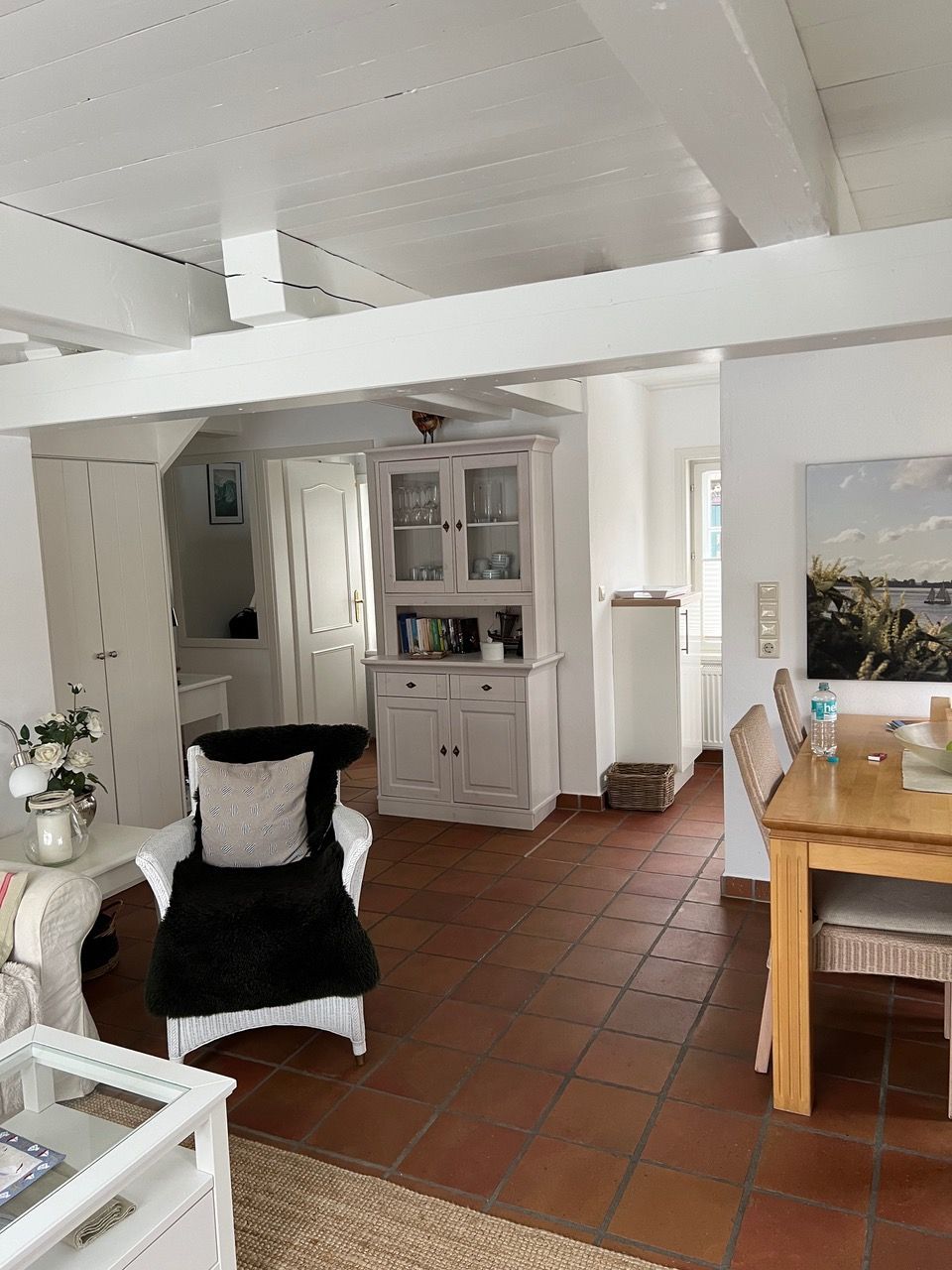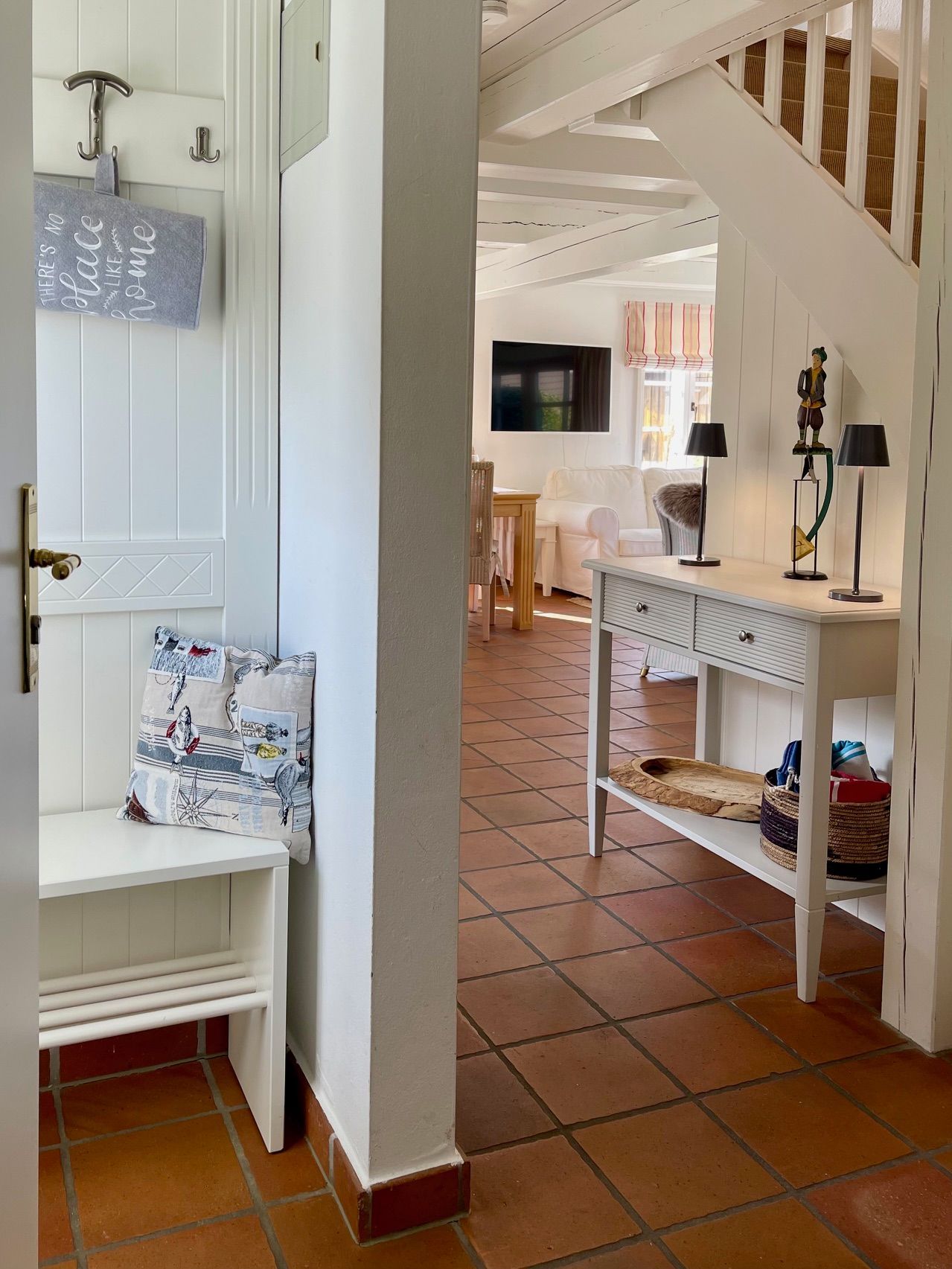 Willkommen im gepflegten Endhausteil Mewes in Borgsum auf Föhr. Im Südteil des reetgedeckten Hauses mit mehreren Hausteilen erwartet Sie eine helle und gemütliche Unterkunft über zwei Etagen.