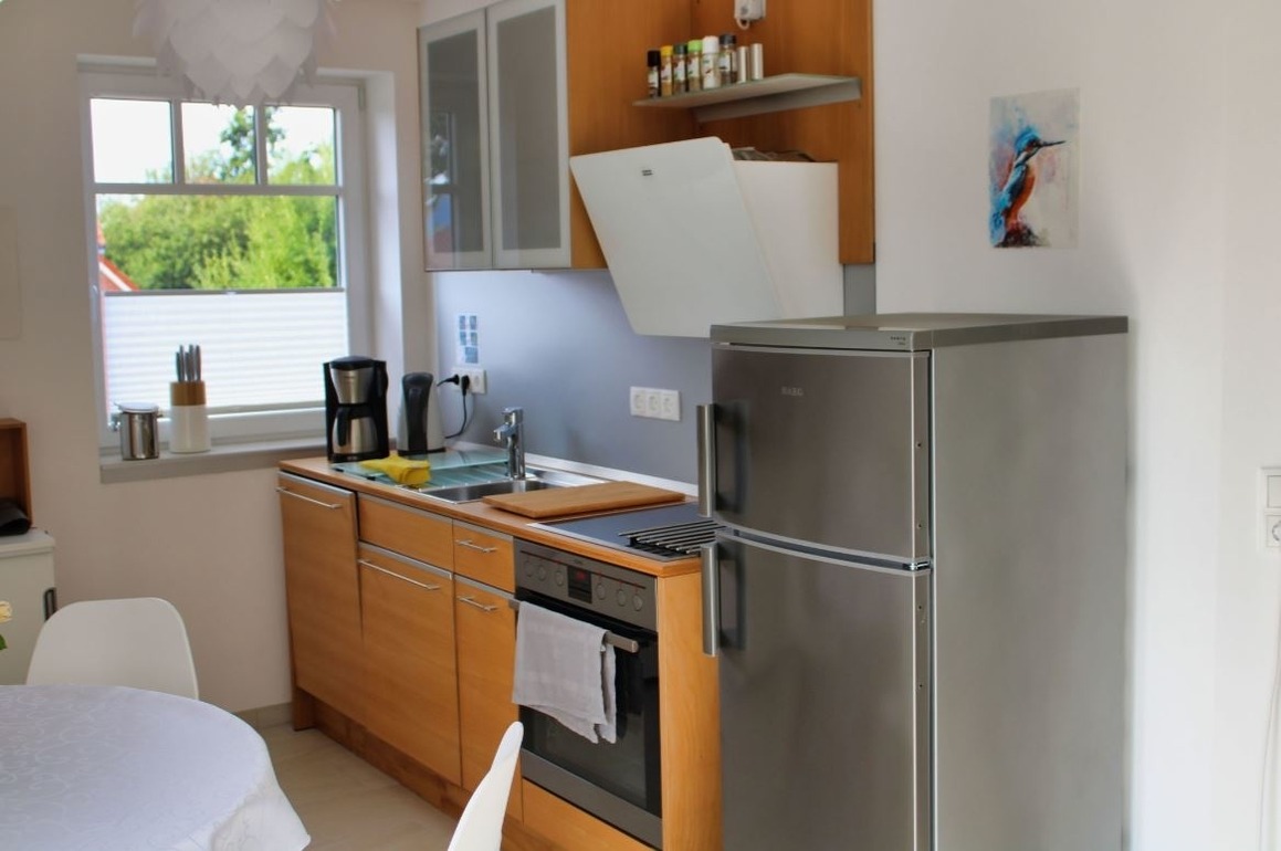 Eine Echtholz-Wohnküche lädt ein, im Urlaub kulinarisch Neues zu probieren.