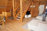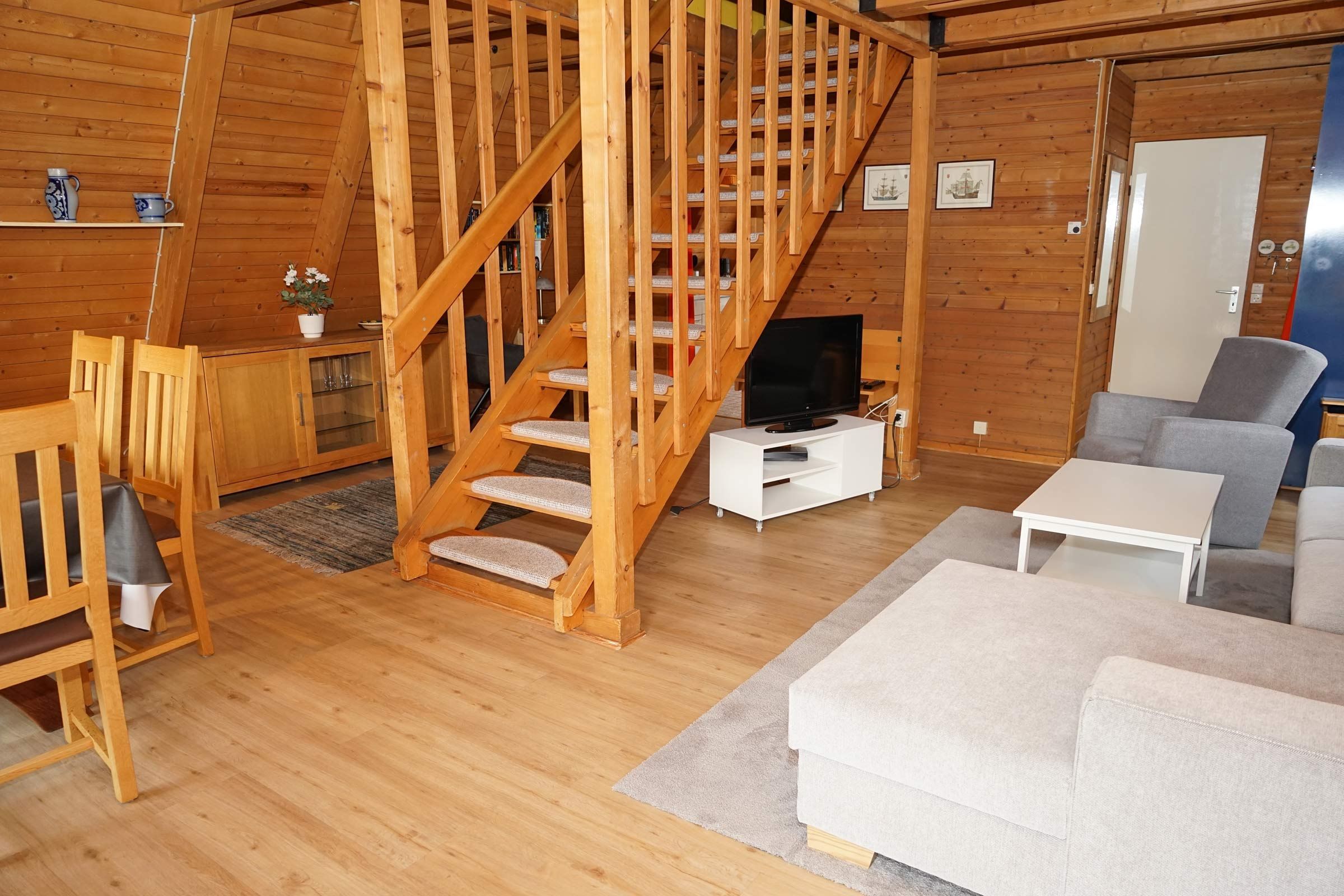 Unser Zeltdachhaus verfügt über zwei getrennte Schlafräume (im oberen Bereich des Hauses), kombiniertes Wohn- und Esszimmer, vollwertige Küche und Terrasse. Ein Kinderreisebett und Kinderhochstuhl sind immer vorhanden und kostenlos nutzbar.