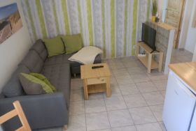 • Die Ferienwohnung II befindet sich im Souterrainbereich des Hauses, ist 35 qm groß und bietet Platz für bis zu 3 Personen. Hier stehen Ihnen ein Wohnzimmer mit Sofa und kleiner Sitzecke, eine offene Küchenzeile mit Cerankochfeld, ein Kühlschrank mit Tiefkühlfach und diverses Kücheninventar zur Verfügung.