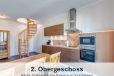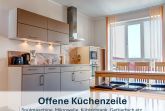 Die offene, voll ausgestattete Küche bietet u.a. Spülmaschine, Ceranherd, Backofen, Kühlschrank mit Gefrierfach, Mikrowelle, Toaster, Kaffeemaschine und Wasserkocher. Am großen Esstisch finden bis zu sechs Personen Platz.