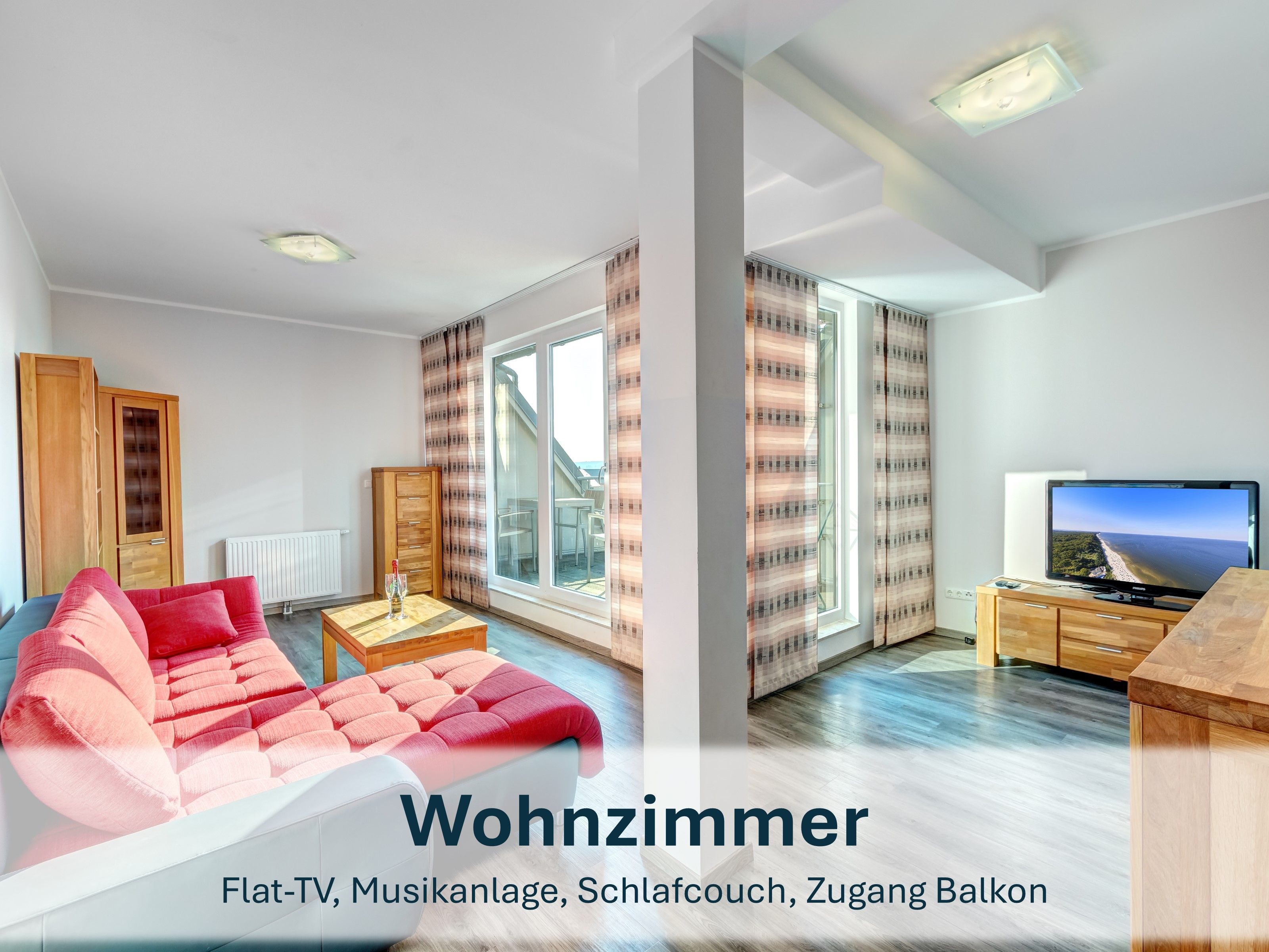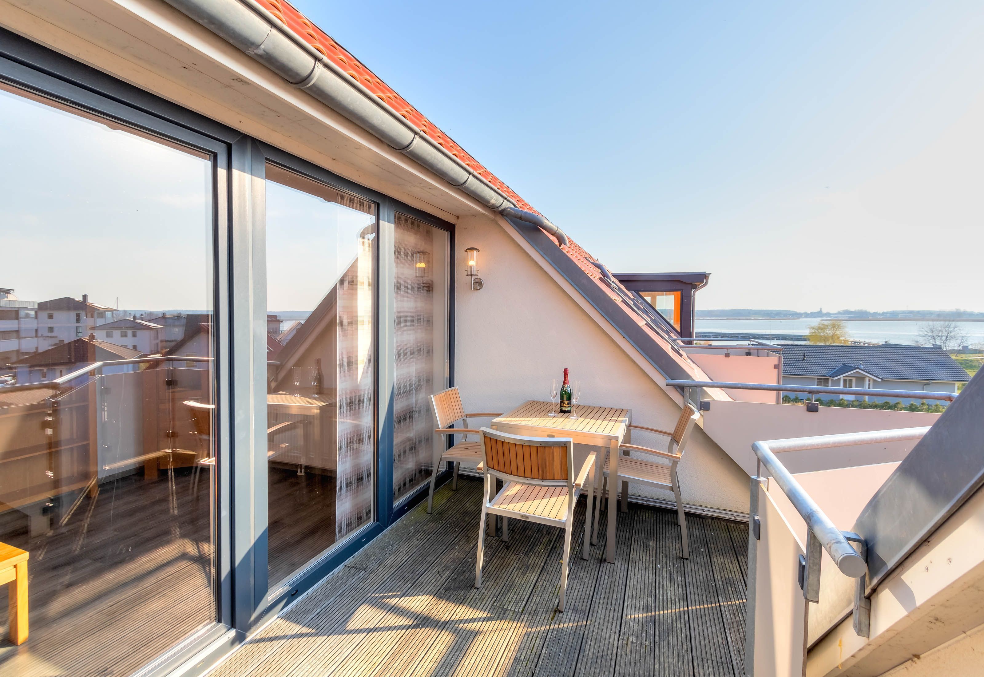 Die stilvolle Maisonettewohnung „Kajak 11“ erstreckt sich über drei Etagen und überzeugt mit durchdachter Raumaufteilung und einem charmanten Turmzimmer. Der großzügige Wohnbereich mit Schlafcouch und Flat-TV lädt zum Verweilen ein, während der möblierte Sonnenbalkon zum Entspannen im Freien einlädt.