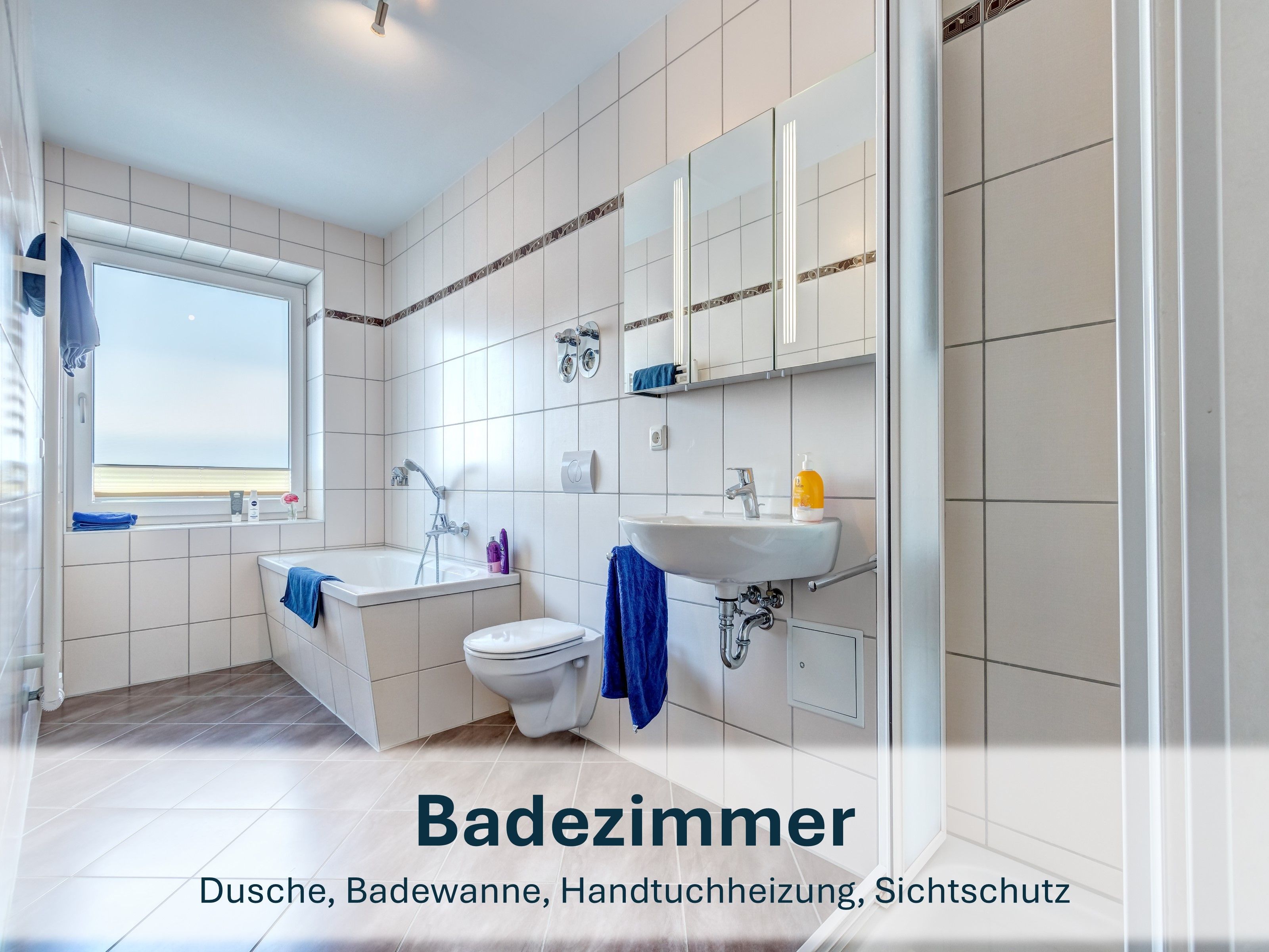 Das moderne Bad ist mit Dusche, Badewanne, WC und Waschbecken ausgestattet. WLAN steht Ihnen in der gesamten Wohnung kostenfrei zur Verfügung.