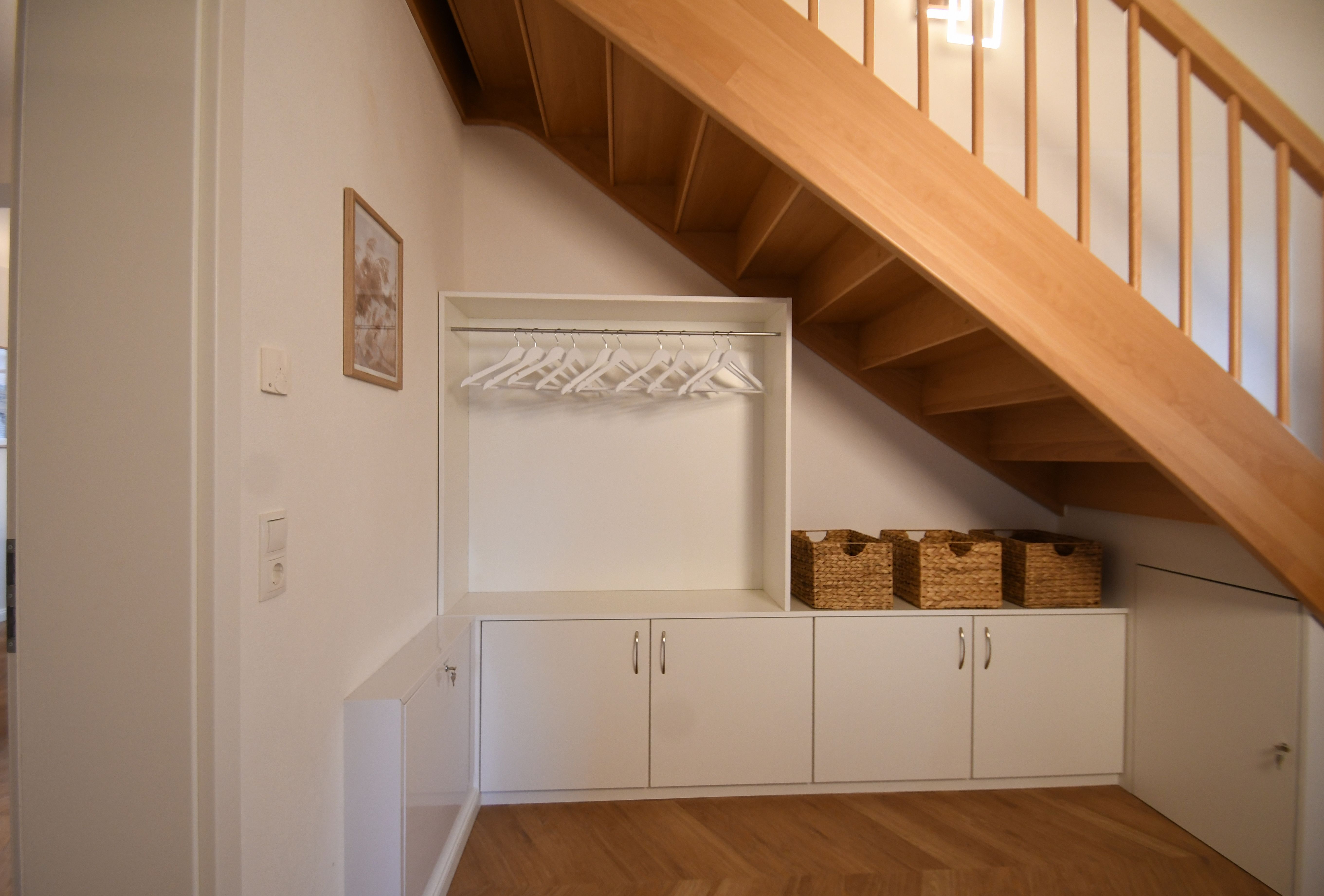 Im Erdgeschoss befidet sich der grosse Wohn/und Essbereich mit angrenzender voll ausgestatteter Einbauküche mit Spülmachine und Backofen.
