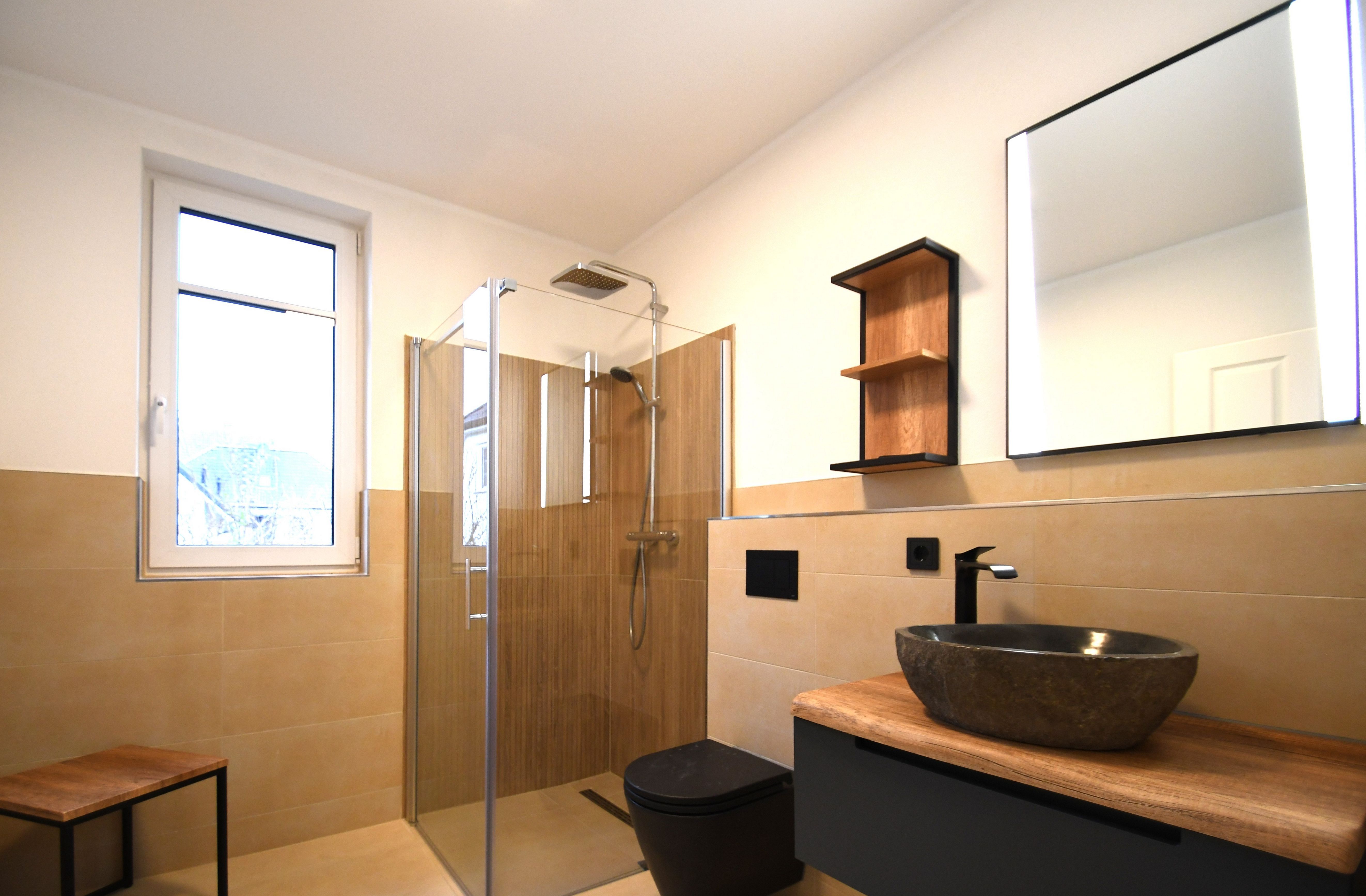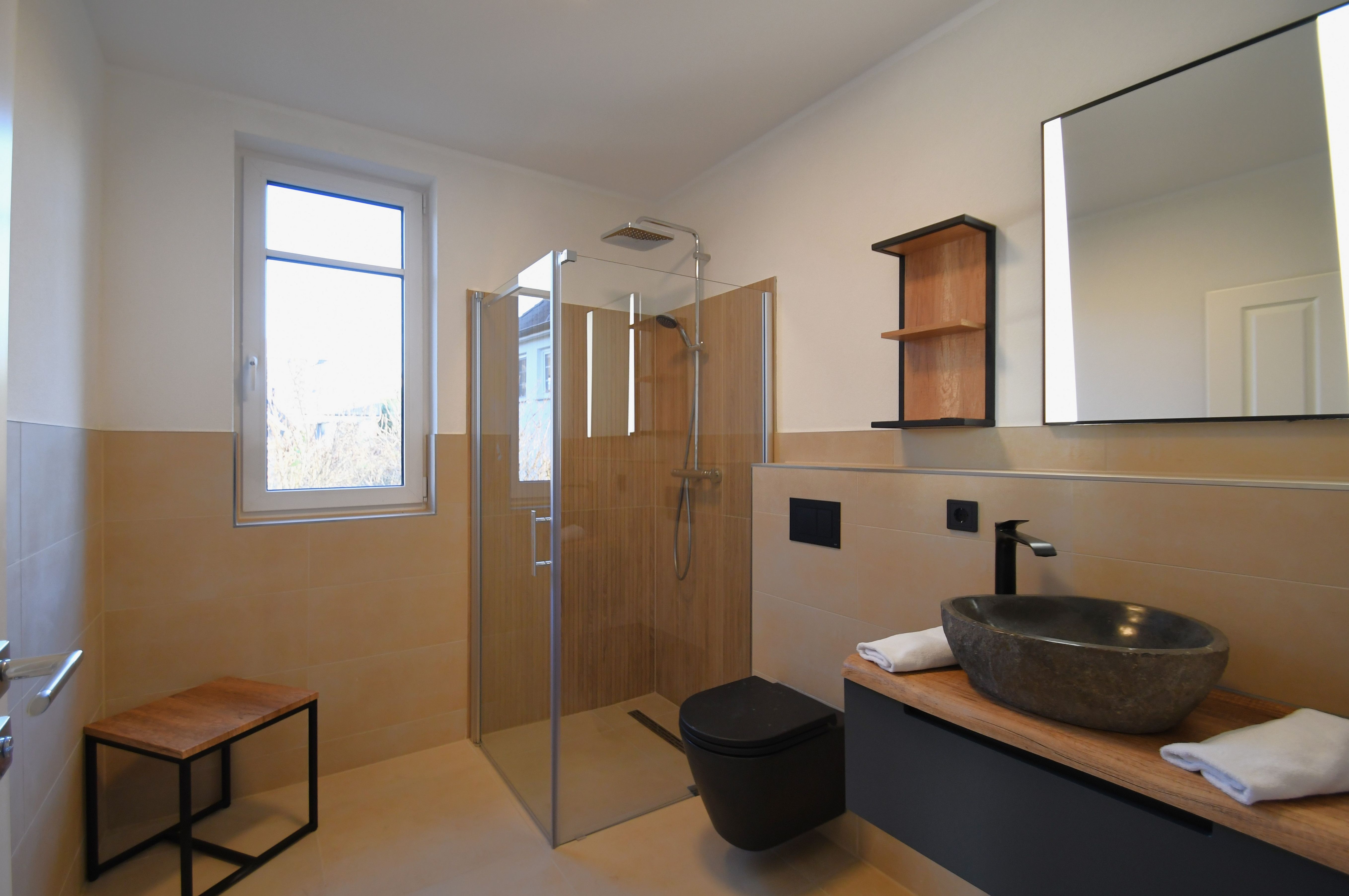 Das Badezimmer im EG ferfügt über eine Dusche und Einzel Waschbecken. Das Badezimmer im OG.ist mit einer grossen Dusche / Badewanne und Doppelwaschbecken ausgestattet.
