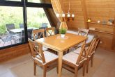 Unser Zeltdachhaus verfügt über zwei getrennte Schlafräume (im oberen Bereich des Hauses), kombiniertes Wohn- und Esszimmer, vollwertige Küche und Terrasse. Ein Kinderreisebett und Kinderhochstuhl sind immer vorhanden und kostenlos nutzbar.