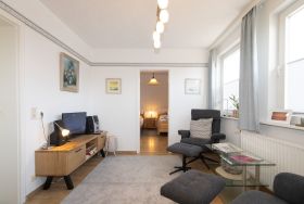 Die Wohnung befindet sich im Obergeschoss des Hauses. Sie verfügt über 2 Einzelbetten die im seperatem Schlafzimmer sind. Die Pantryküche ist mit Allem ausgestattet für den täglichen Bedarf. Kaffeemaschine, Toaster und Wasserkocher sind ebenfalls vorhanden. Das Badezimmer verfügt über ein WC und eine Dusche und ist hell ausgestattet.