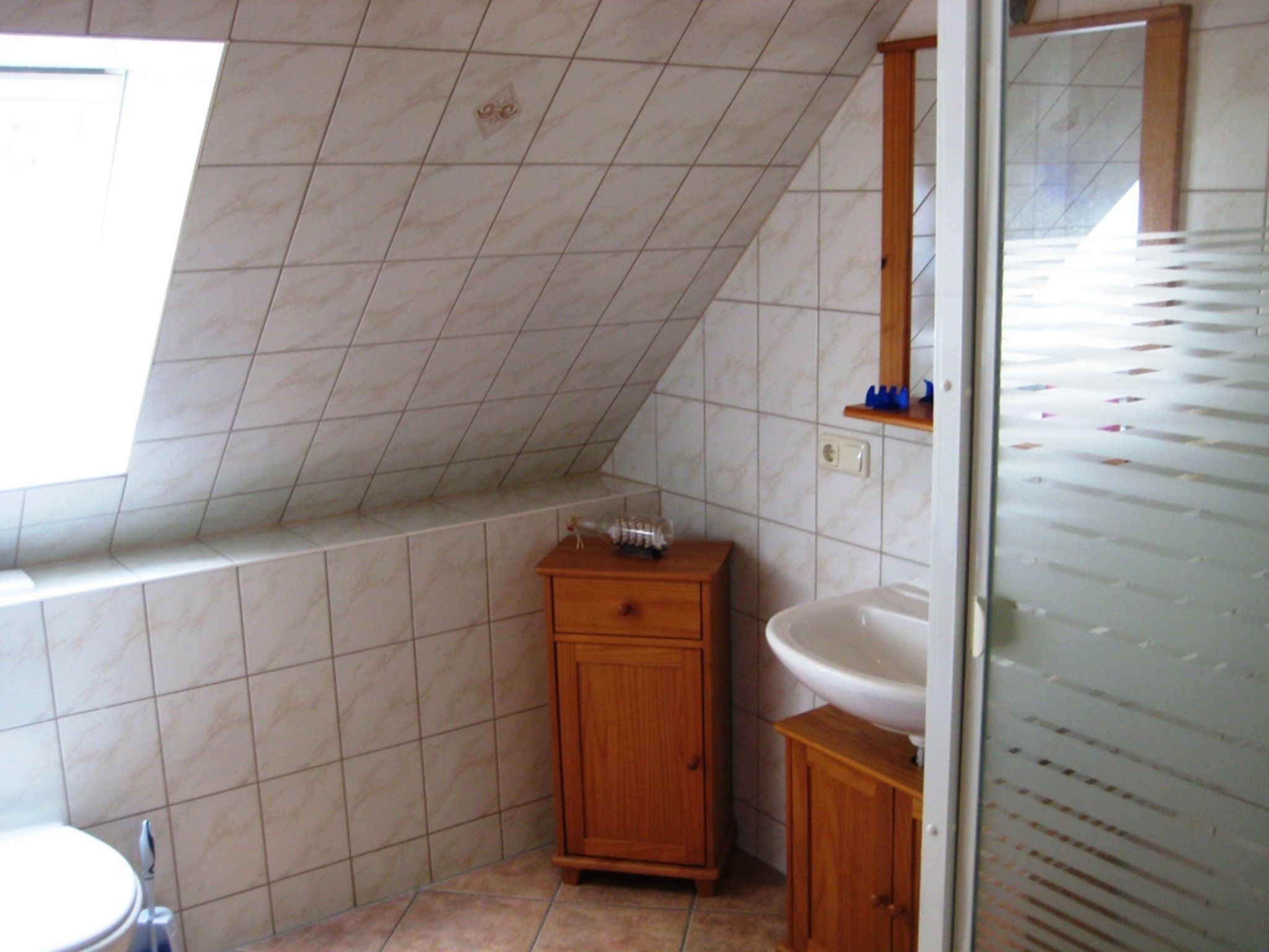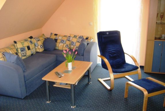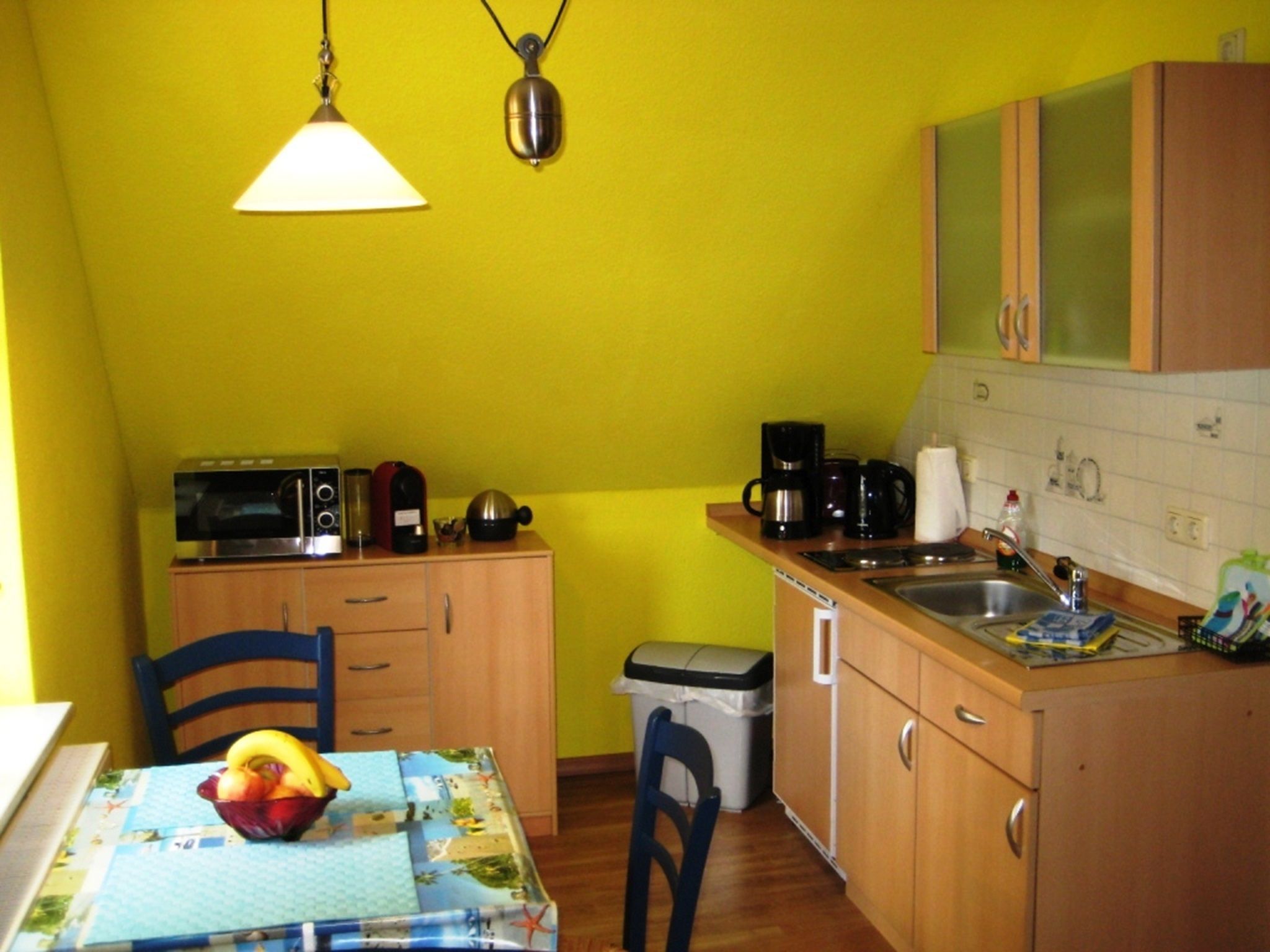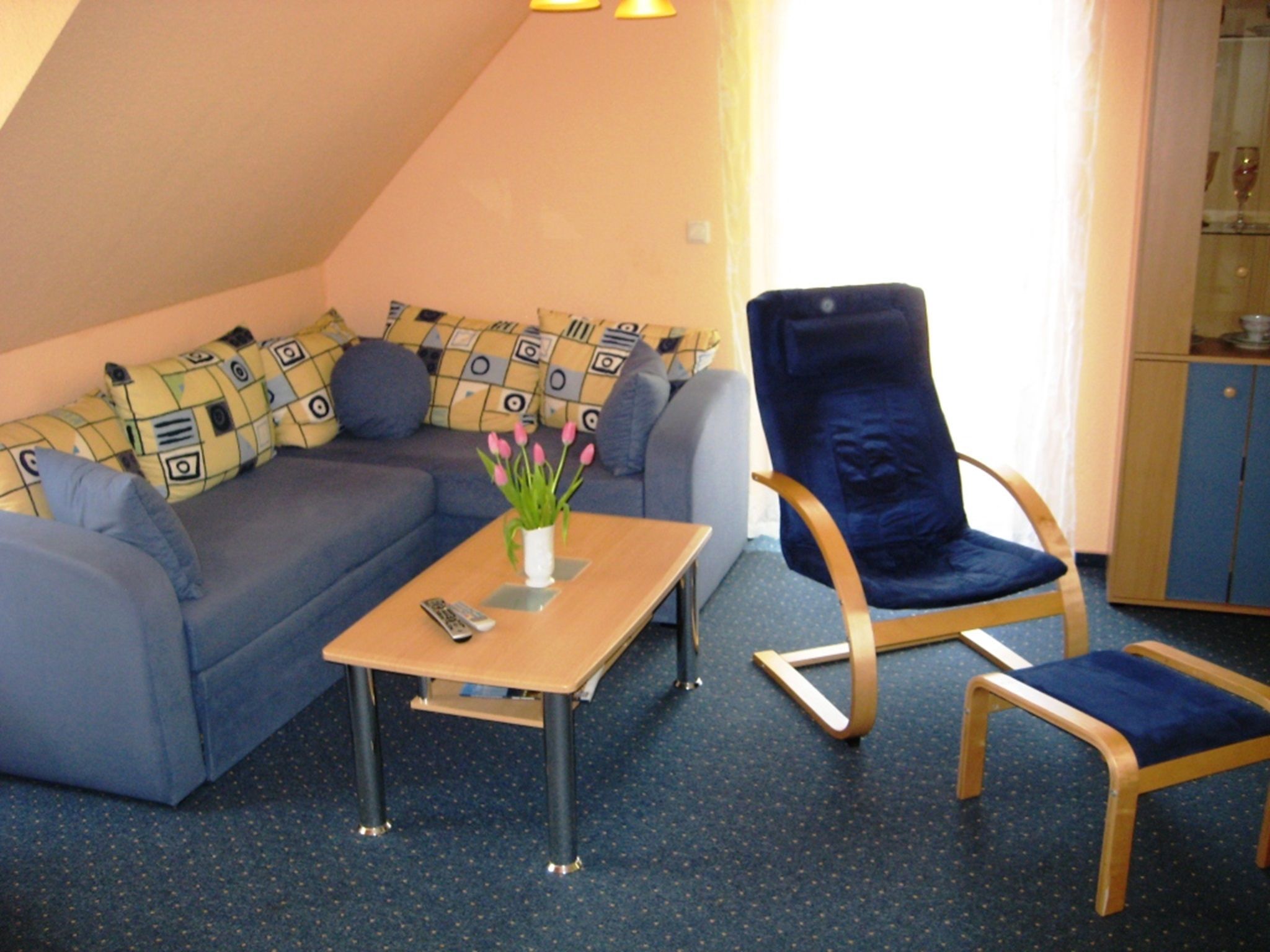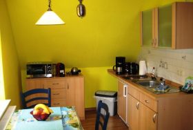 Unsere moderne Ferienwohnung liegt im Dachgeschoss eines im Jahre 2005 neu gebauten Hauses.Über einen separaten Aufgang erreichen Sie die 50 Quadratmeter größe Wohnung mit einem Wohnraum mit Pantryküche, Essecke und Couchecke, Fernseher und Radio. Ein Schlafzimmer mit Doppelbett gehört ebenso zur Wohnung wie ein Bad mit Dusche und WC. Die Erstausstattung Bettwäsche ist inklusive.