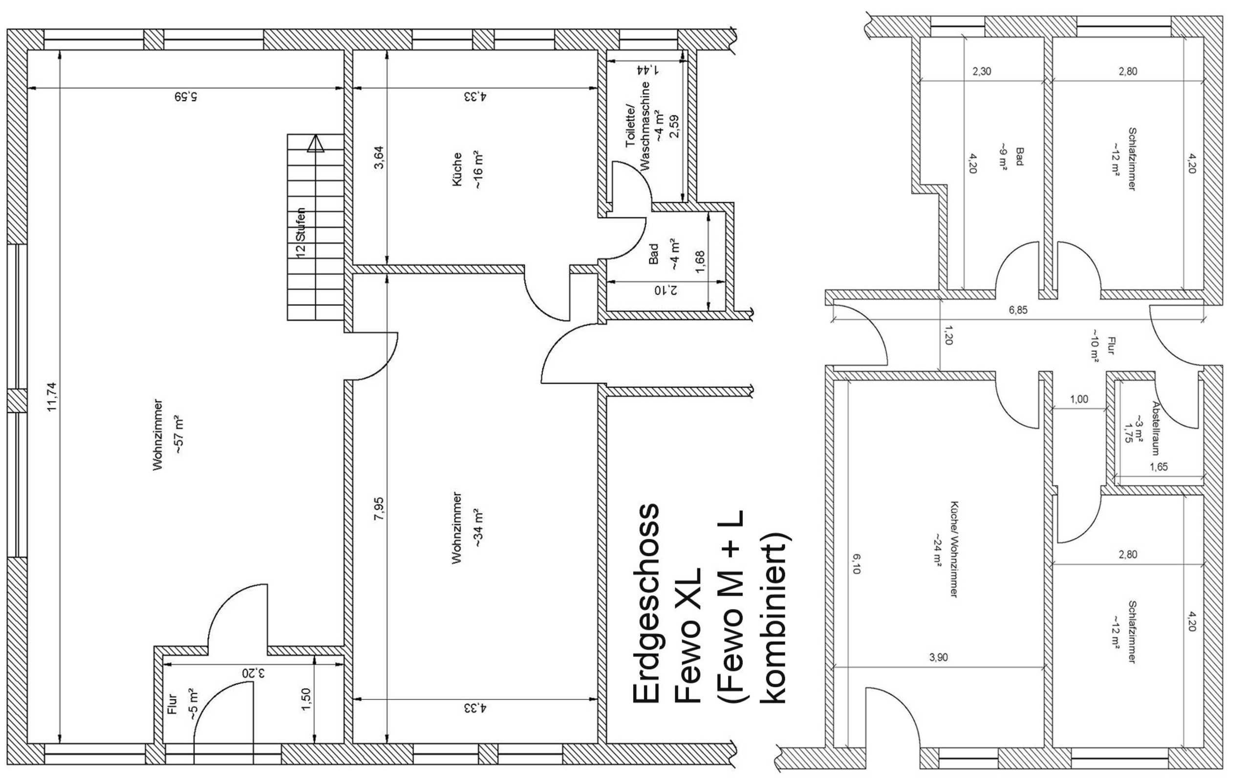 Tipp: für kleinere Gruppen und Familien sind im Haus die 3-Raum-Fewo M (70m²) oder 7-Raum-Fewo L (200m²) einzeln buchbar.