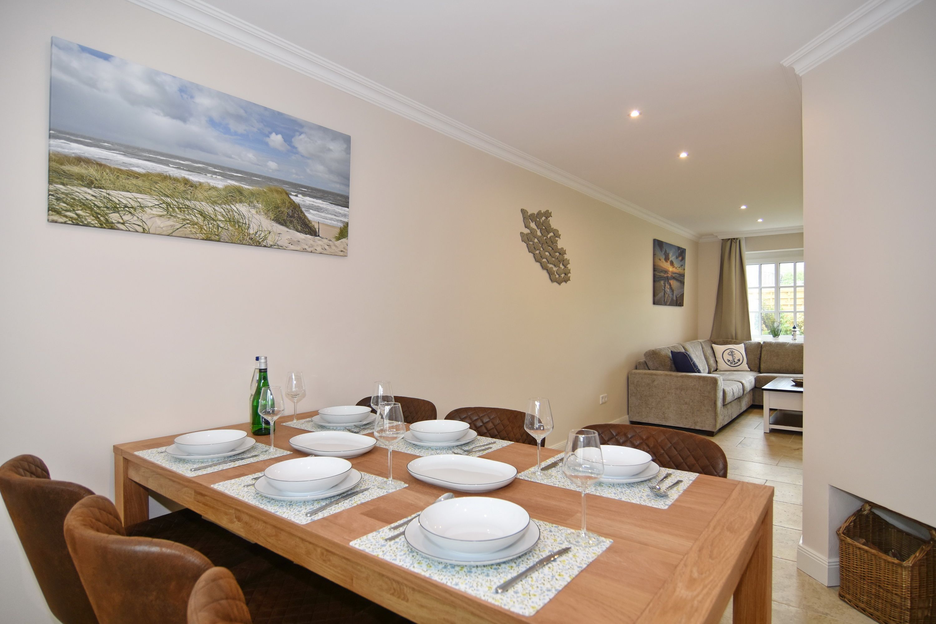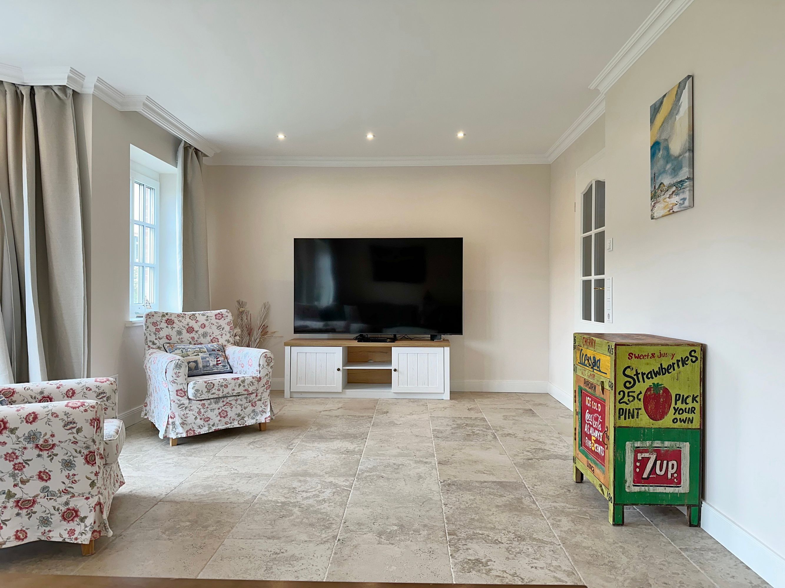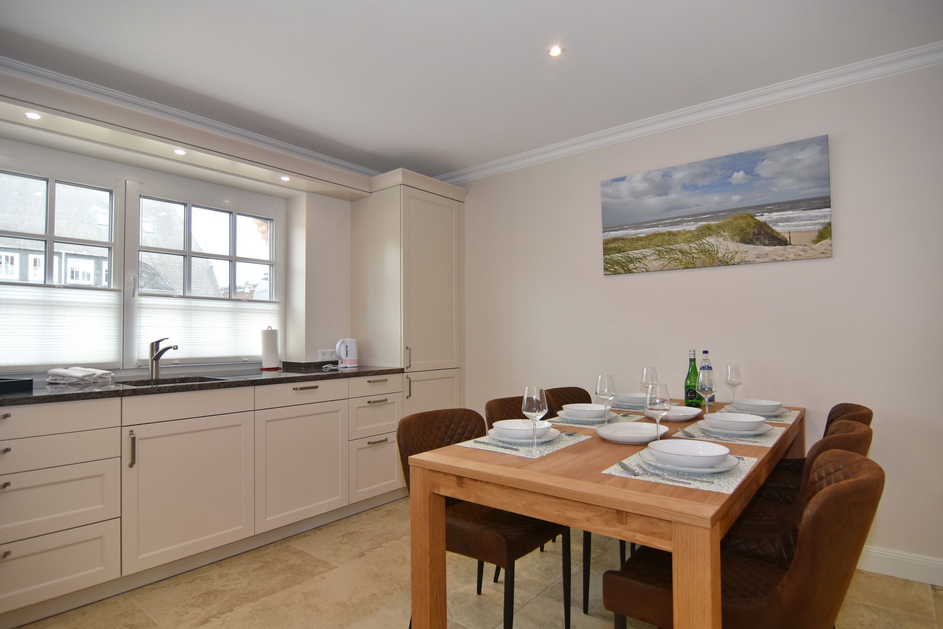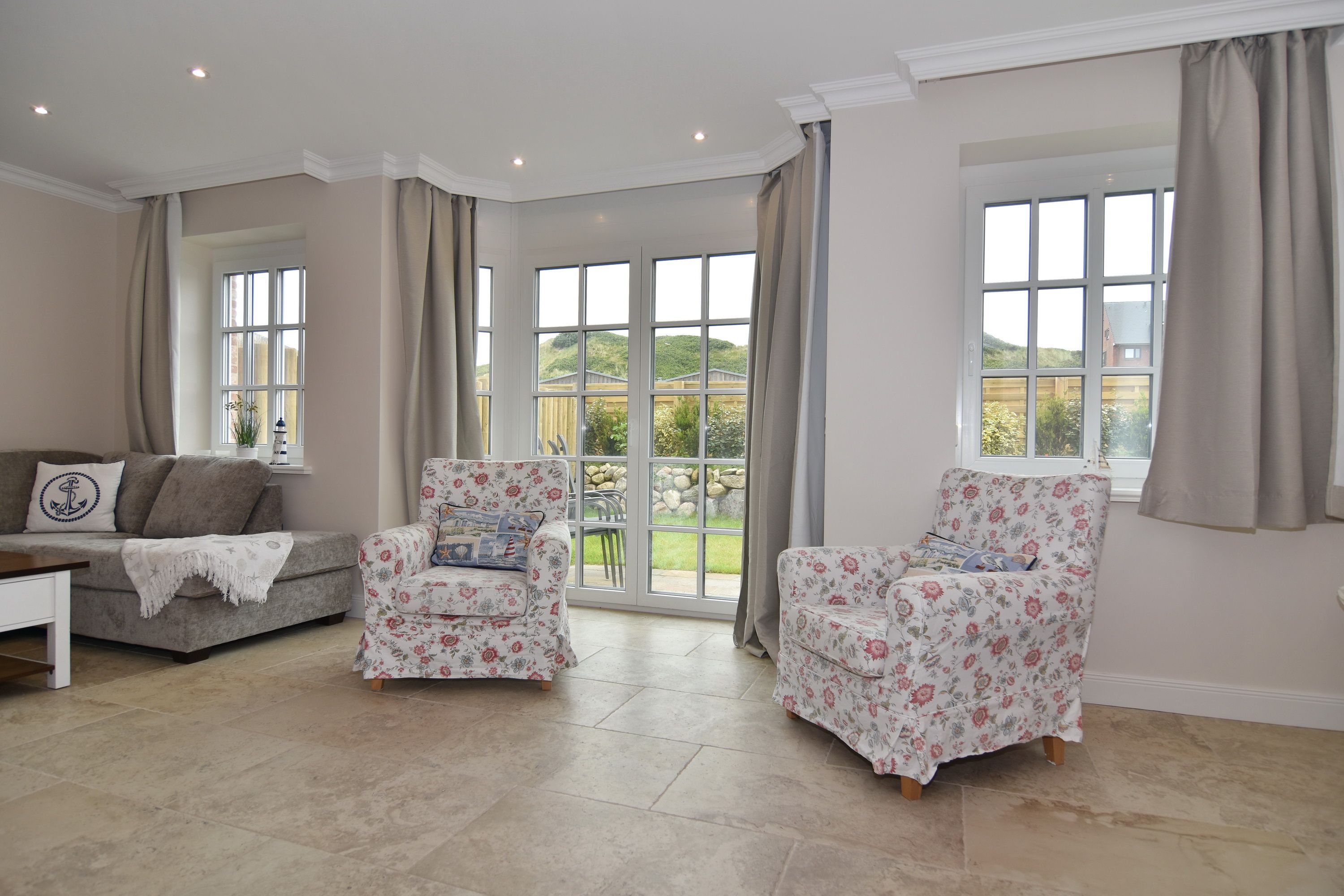 Großzügige Doppelhaushälfte in zentaler und strandnaher Lage Westerlands. EG: Wohnraum mit Essplatz, Sitzecke, TV, Kamin, offene Küche mit Kühlschrank, Backofen, Mikrowelle, Ceranfeld, Geschirrspüler, Kühlschrank und Gefrierschrank. Garten mit Südterrasse und Terrassenmöbeln. Gäste-WC, Heizungs-/Abstellraum mit Kinderreisebett (120x60, ohne Matratze und Bettzeug) und Kinderhochstuhl. OG: 2 Schlafzimmer mit Doppelbetten (180x200, 2 Matratzen), 1 Schlafzimmer mit 2 Einzelbetten (je 90x200). Alle Schlafzimmer mit Kleiderschrank und TV. Ein Bad ensuite mit großer bodentiefer Dusche, Waschmaschine und Trockner, ein Bad mit Wanne mit Duschvorrichtung, das vom Flur aus begehbar ist. Parkmöglichkeiten am Haus für maximal 2 Pkws. Fahrräder können derzeitig im Garten, später auch in der Garage abgestellt werden. Tierhaltung ist gestattet und muss kostenpflichtig angemeldet werden. Der Garten ist komplett eingezäunt. Rauchen im Objekt ist nicht gestattet.