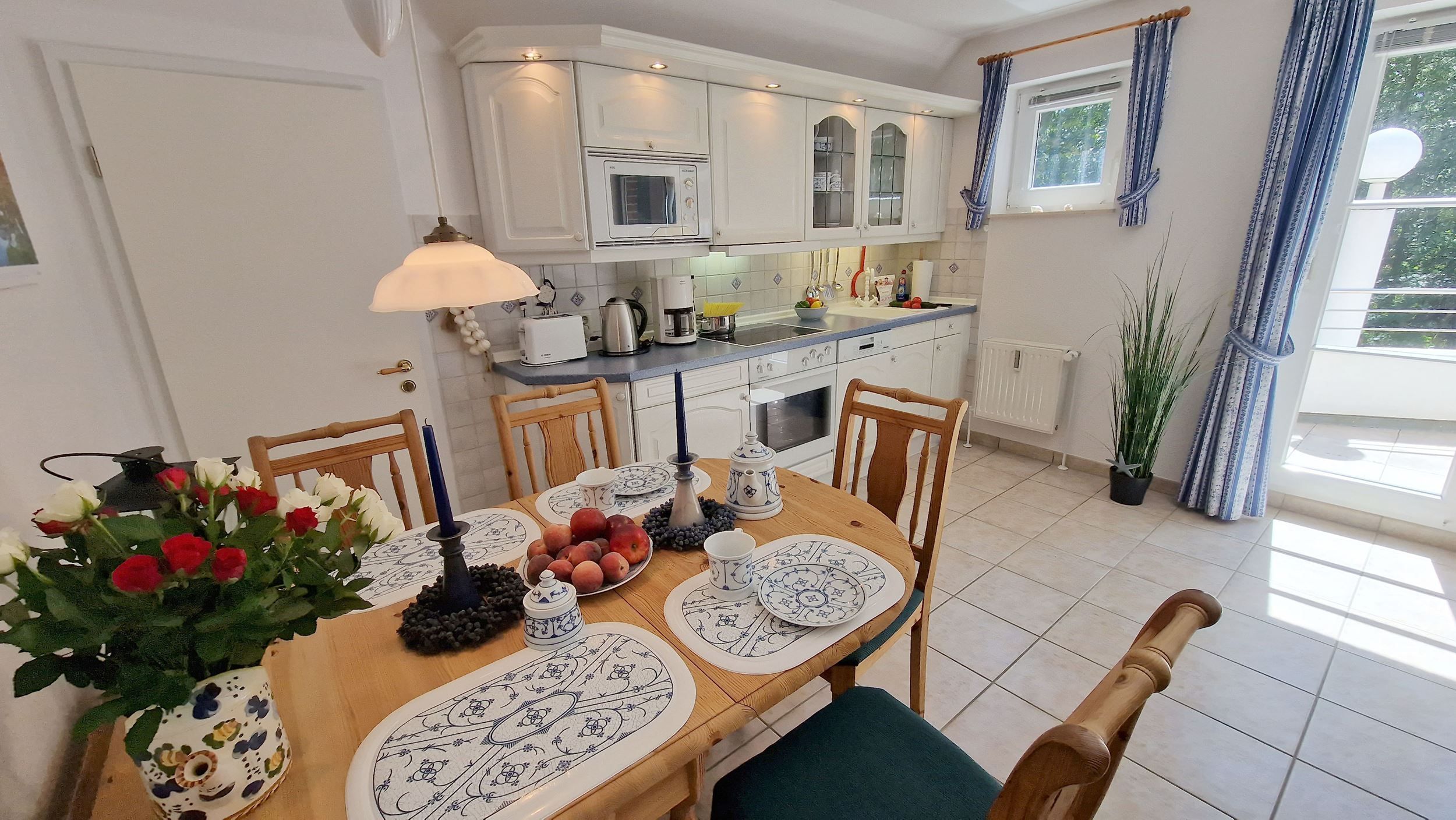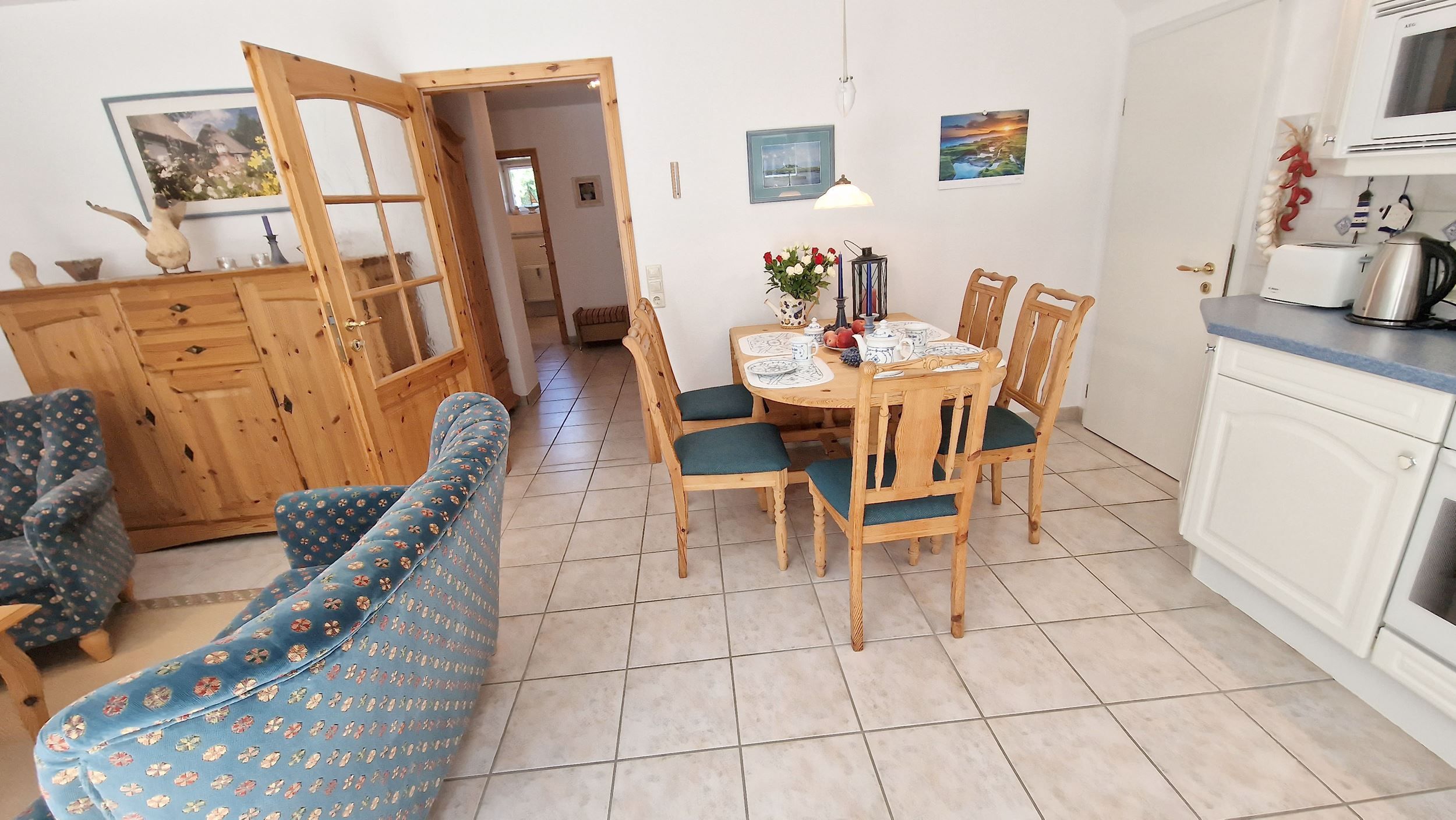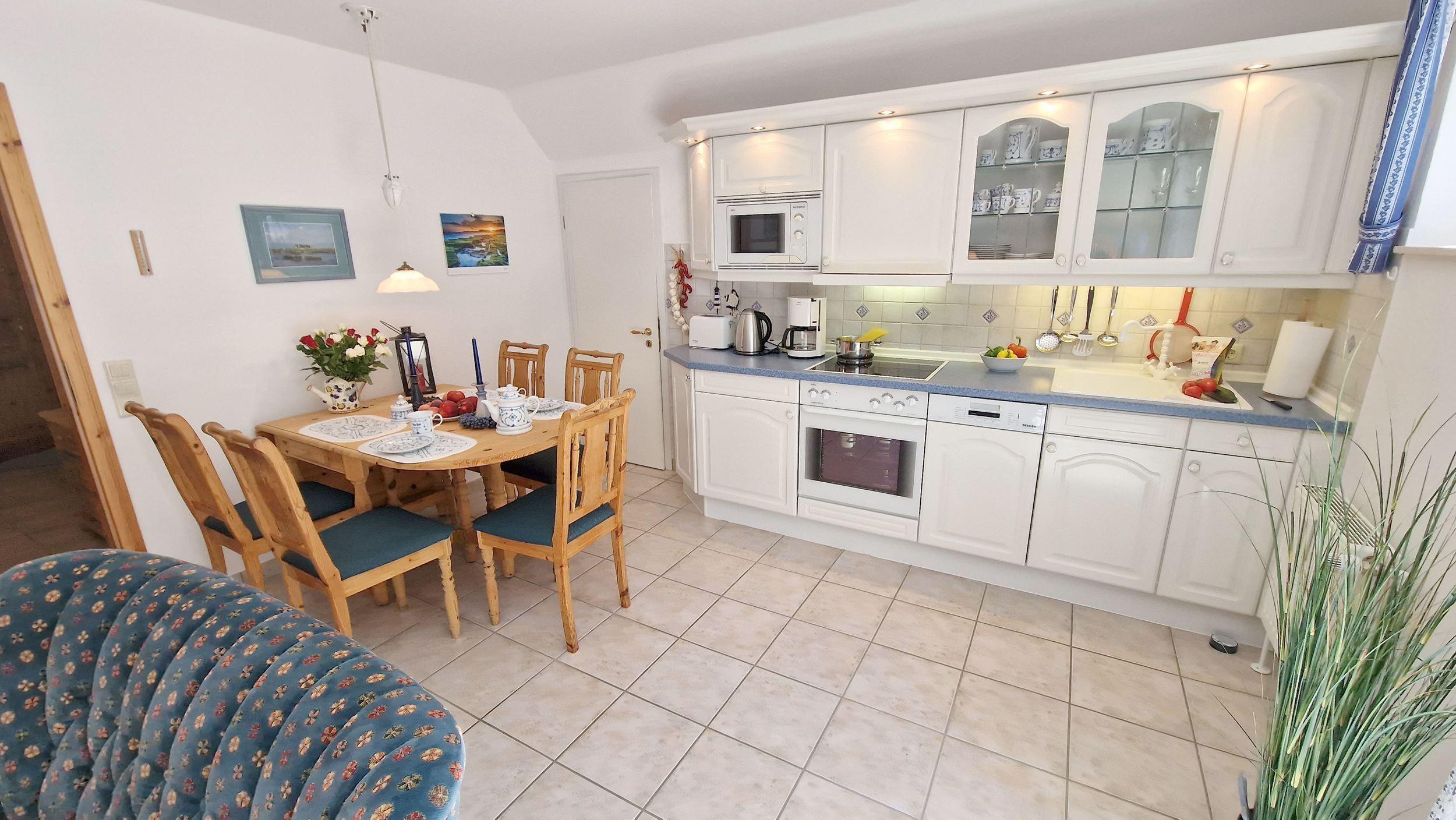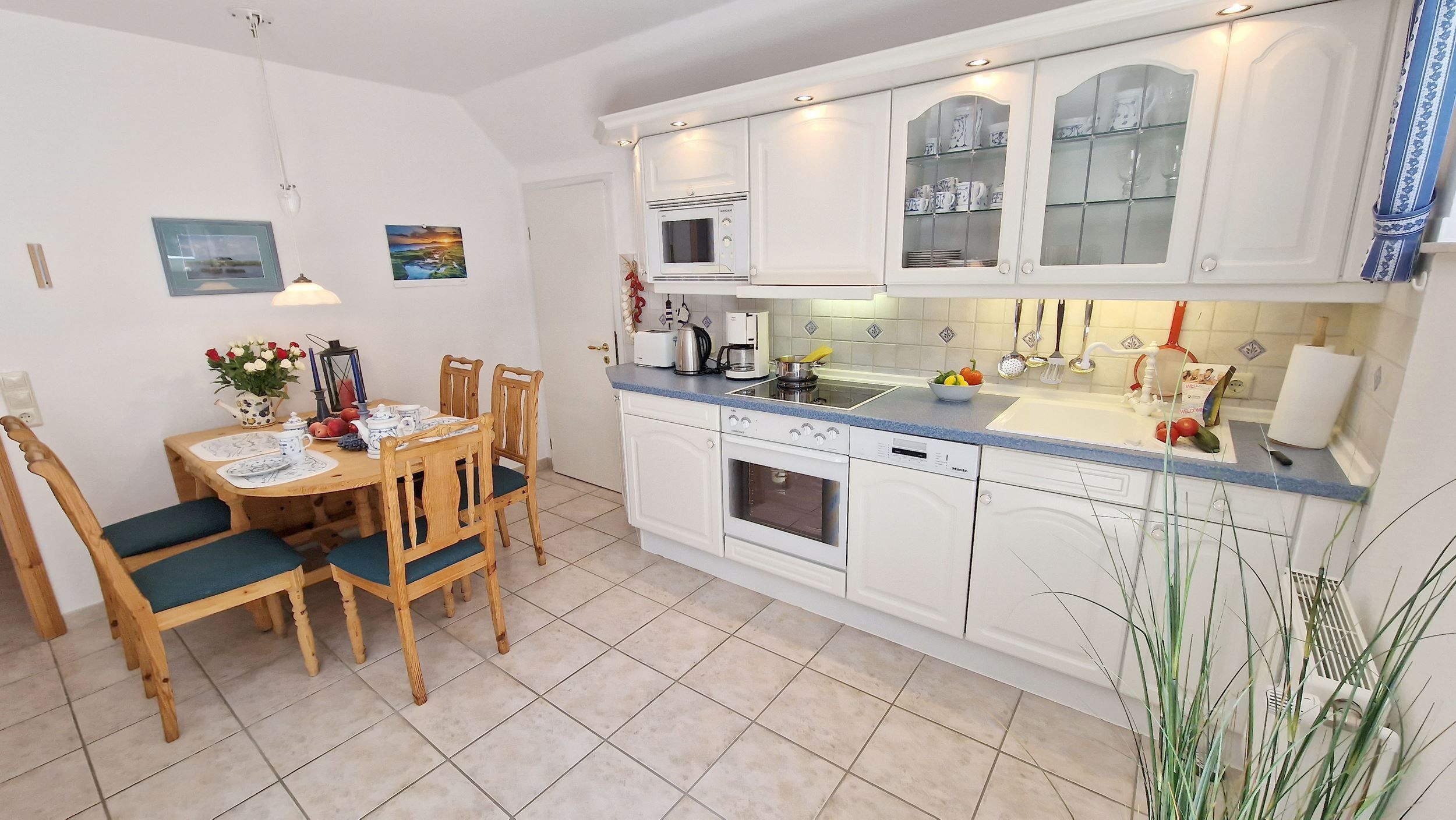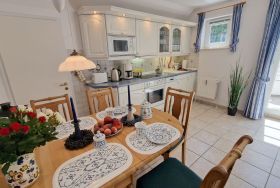 Das 60 m² große Appartement ist für einen Urlaub an der Nordsee die ideale Friesen-Oase. Bis zu vier Personen können es sich hier gut gehen lassen. Das Urlaubsdomizil ist friesisch eingerichtet, liegt im 2ten Obergeschoß und verfügt über zwei Schlafzimmer. Das Wohnzimmer ist großzügig geschnitten, bietet viel Platz zum Kuscheln auf dem Sofa. Genießen Sie darüber hinaus den großen Südbalkon oder essen Sie entspannt am Esstisch. Die Küche ist offen und mit Geräten wie Herd, Kühlschrank, Spülmaschine, Mikrowelle, Toaster etc. voll ausgestattet. Den großen Südbalkon mit Strandkorb können Sie vom Wohnzimmer aus betreten. Ob beim Sonnenbaden im Strandkorb oder beim Frühstück im Freien die frische Nordseeluft erfrischt so oder so Körper und Seele. Großer Fahrradkeller, Stellplatz Nr.04 & WLAN sind ebenfalls kostenlos enthalten.