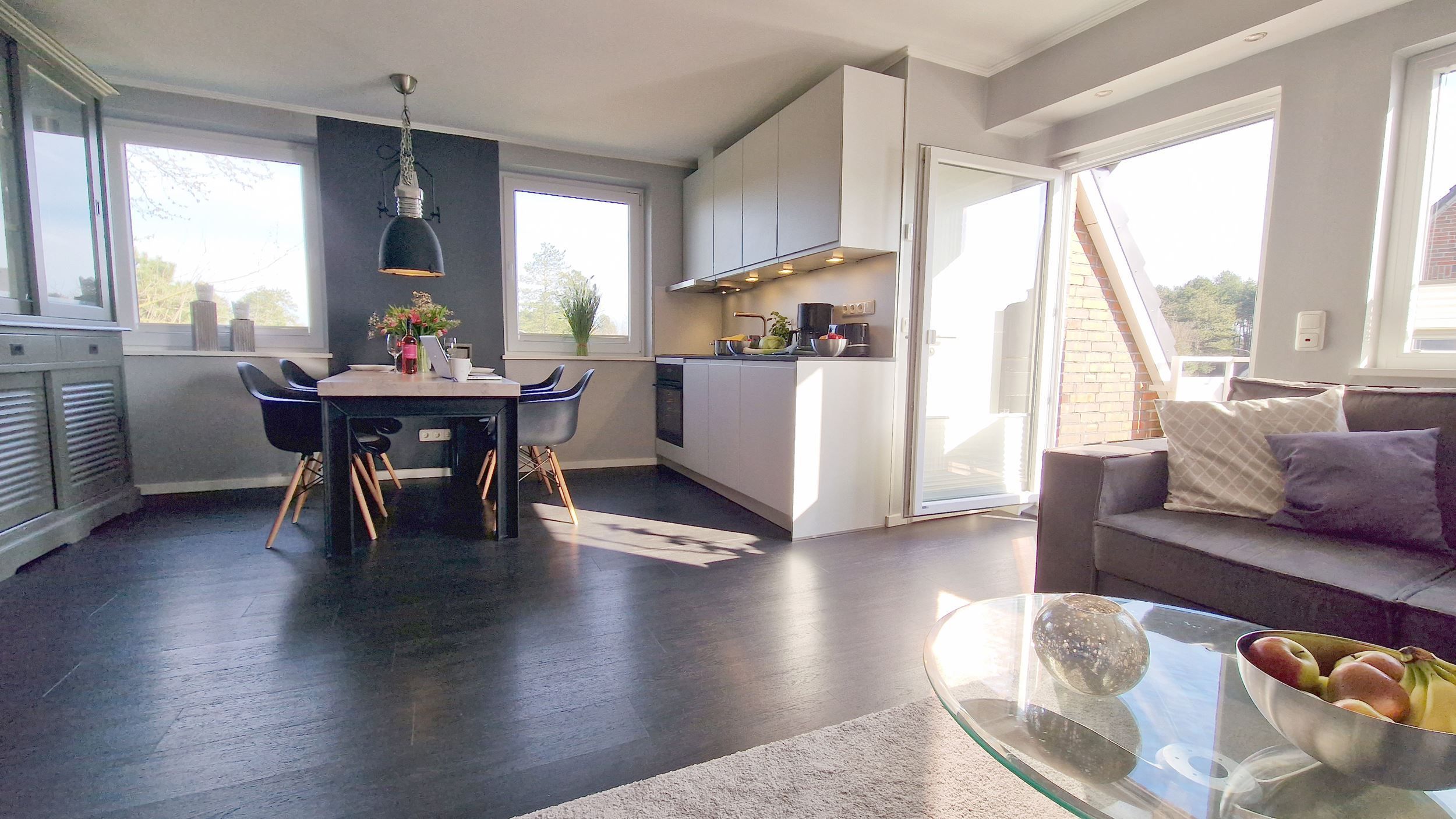 Entspannen Sie in der modern ausgestatteten Wohnung mit Südbalkon in einem ruhig gelegenen Wohngebiet. Es erwartet Sie ein gemütlicher Wohnbereich mit Schlafcouch und großem Smart-TV, welcher bereits Zugang zu Netflix und Amazon Prime bietet. Die integrierte Küche mit Induktionskochfeld und Backofen lädt zum Kochen ein. Im hyggeligen Schlafzimmer befindet ein Doppelbett, welches über das Fußende erreicht wird. Das Duschbad mit Fenster wird durch die Fußbodenheizung beheizt. Natürlich steht Ihnen neben einem PKW-Stellplatz und extra Gefrierschrank auch WLAN zur Verfügung. Auf Anfrage ist auch eine Maximalbelegung mit 2 Erwachsenen und 2 Kindern möglich.