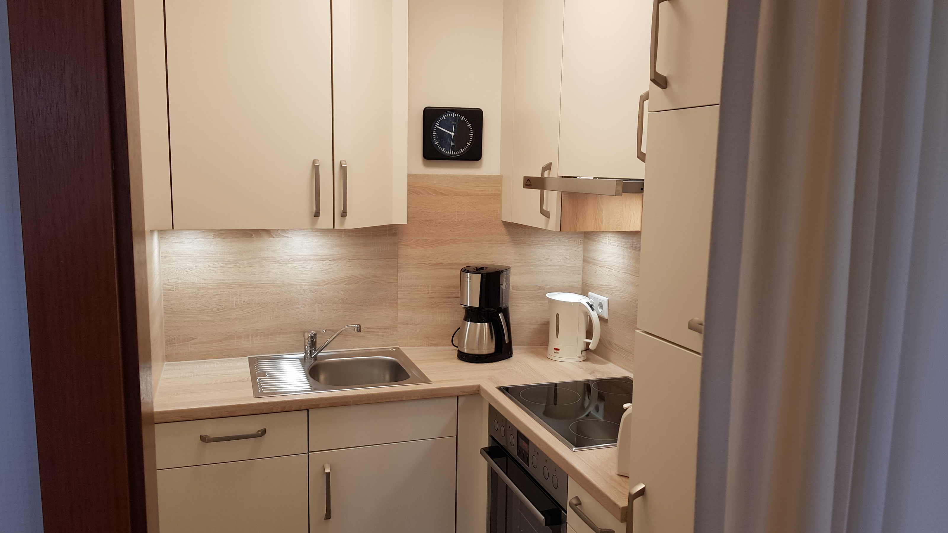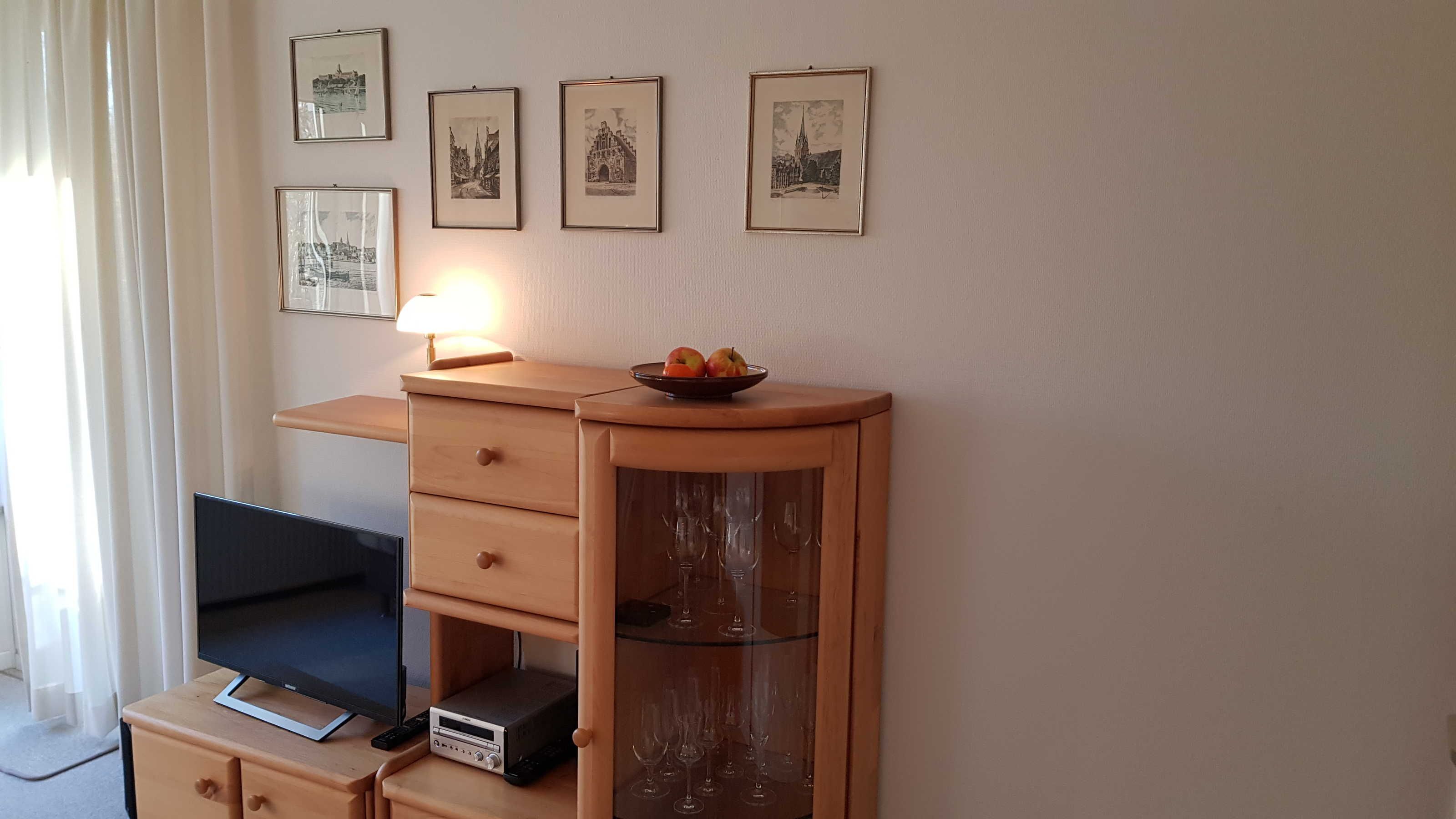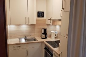 Appartement in Glücksburg (Ostsee) für gehobene Ansprüche, 3. Etage - App. Nr. 3332 (Aufzug vorhanden) im Appartementhaus „Sandwighof“. Das Appartement ist 43 m² groß und ideal für einen Ostsee-Urlaub mit 2 Personen, Wohnraum mit Balkon, Kabel-Flachbild-Fernseher, WLAN, CD-DVD Musikanlage, ein Schlafraum, Küche mit Einbauherd, Dunstabzugshaube und Geschirrspüler,  Mikrowelle, Bad mit Duschwanne und WC, Müllschlucker.