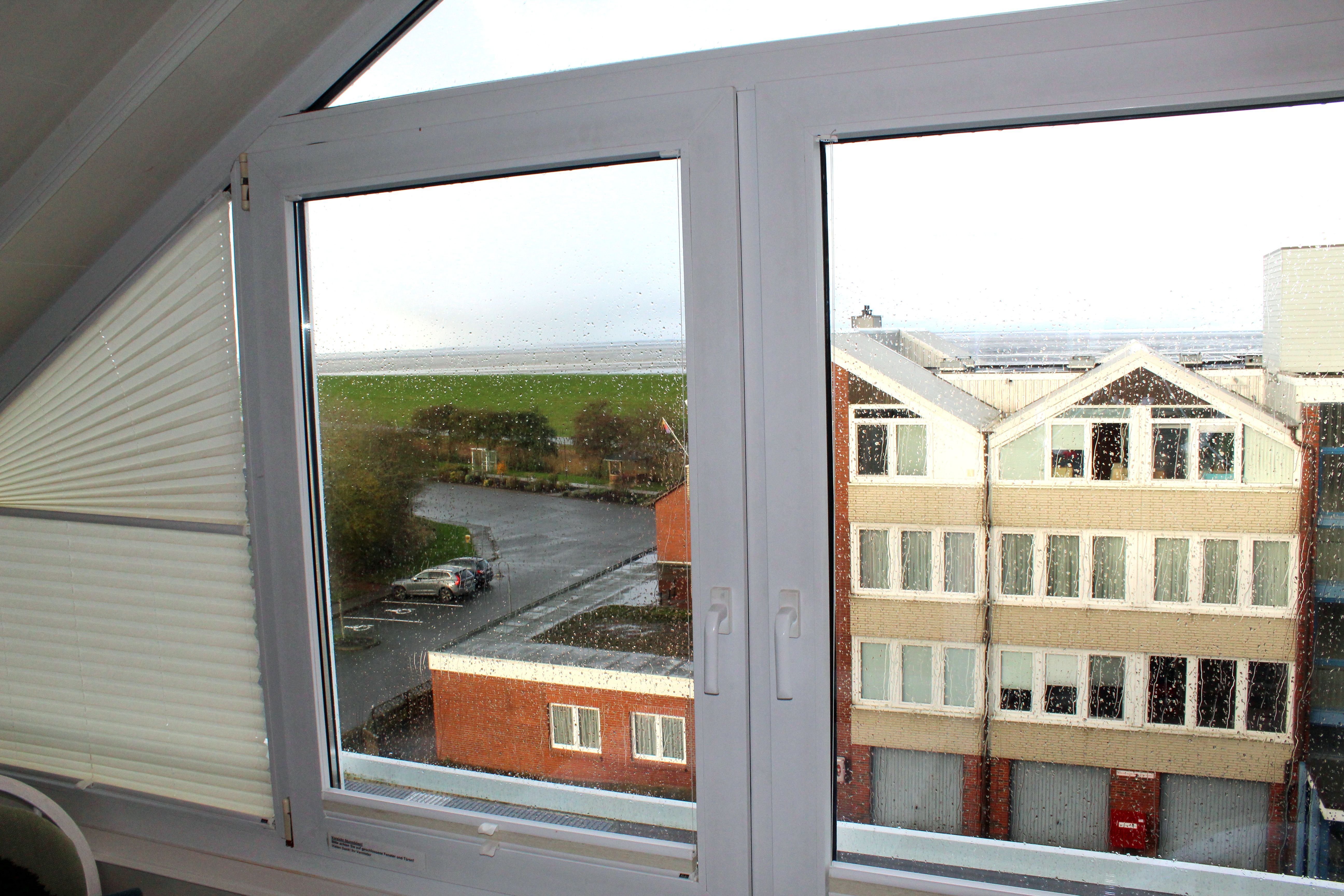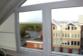 Die Wohnung liegt im 4. Stock und ist mit einem Aufzug zu erreichen. Vor dem Haus gibt es freie Wahl an kostenlosen PKW-Stellplätzen, sowie eine Garage für Ihre Fahrräder und Zubehör, die Sie sich mit dem Schwesterappartement Meerblick 60 teilen.
