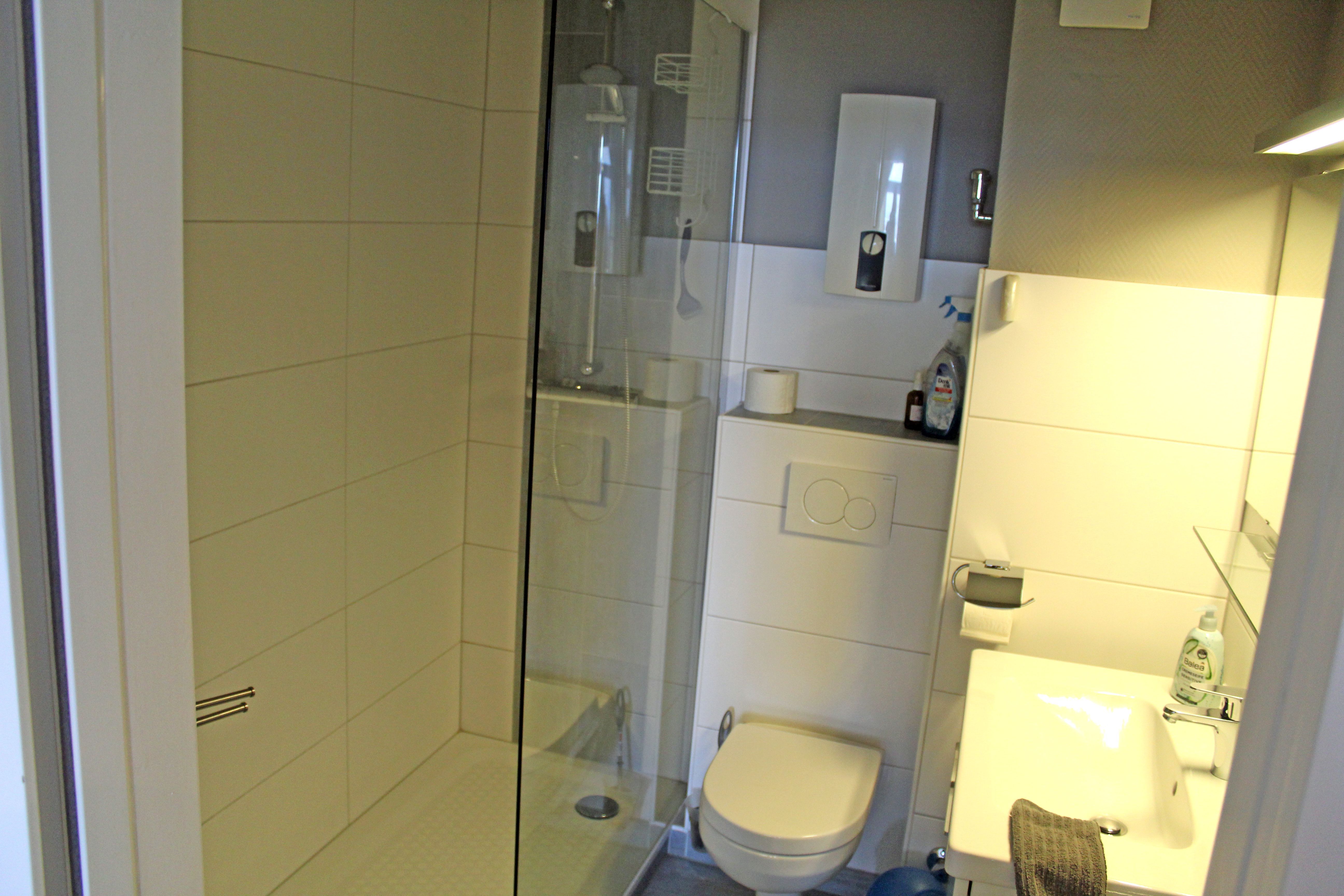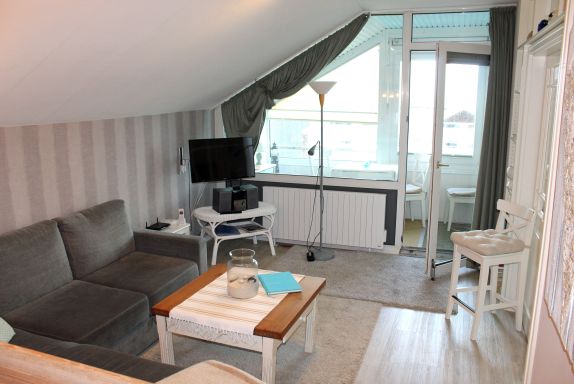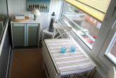 Die Wohnung liegt im 4. Stock und ist mit einem Aufzug zu erreichen. Vor dem Haus gibt es freie Wahl an kostenlosen PKW-Stellplätzen, sowie eine Garage für Ihre Fahrräder und Zubehör, die Sie sich mit dem Schwesterappartement Meerblick 57 teilen.