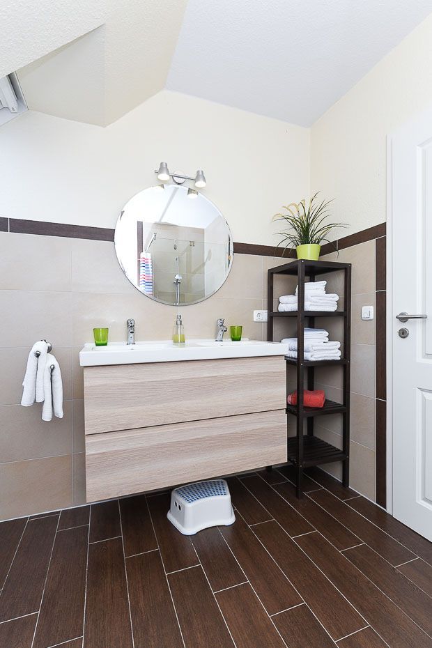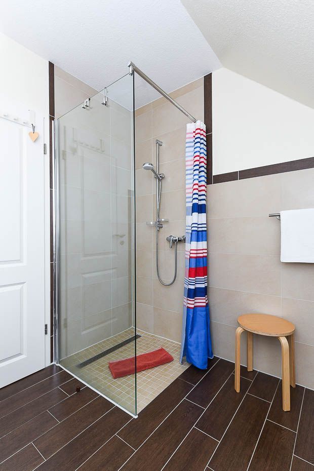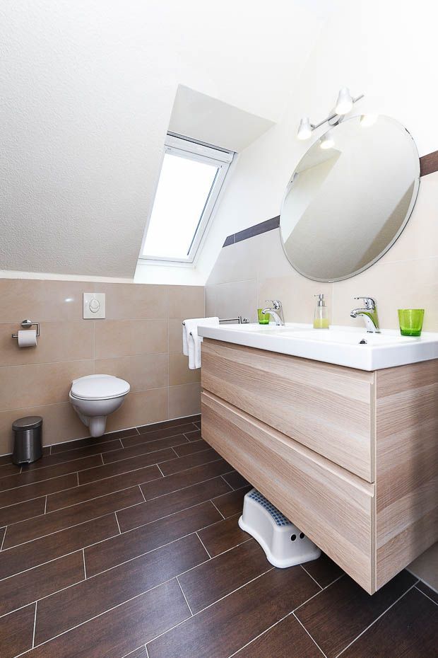 Badezimmer mit Dusche, 2 Waschtischen und WC