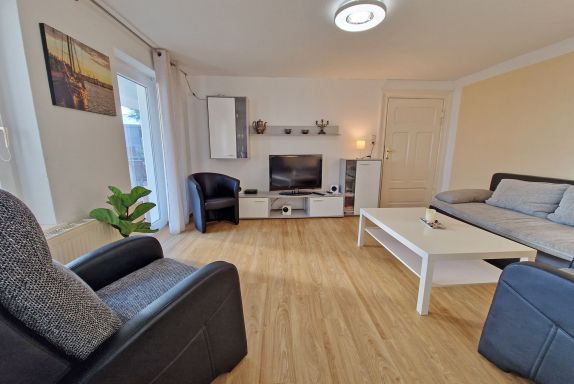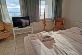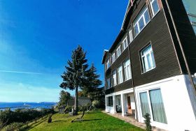 Die Ferienwohnung Ostseeheim ist Bestandteil einer Meerblickvilla und liegt oberhalb des Sassnitzer Stadthafens und bereitet seinen Gästen einen grandiosen Blick auf die Ostsee und den Sassnitzer Hafen. Einkaufsmöglichkeiten und diverse Restaurants sind durch die zentrale Lage in wenigen Gehminuten zu erreichen. Fußläufig erwandern Sie in kürze den Nationalpark Jasmund. Bitte beachten Sie, dass bei Buchungen mit Haustier zu den 8,- Euro Gebühren pro Tier/Nacht, eine einmalige Haustierendreinigung in Höhe von 30,- Euro fällig wird! Die Wohnung mit vorgelagertem Garten verfügt über einen separaten Eingang. Neben einer überdachten Terrasse gibt es eine kleine, verglaste Loggia. Die Terrasse ist mit Teak-Gartenmöbeln ausgestattet. Im Garten stehen außerdem Liegestühle zur Verfügung. Die ca. 100qm große Wohnung besteht aus einem Wohnzimmer mit Schlafcouch und zwei separaten Schlafzimmern mit Doppelbetten. Sowohl aus dem Wohnzimmer als auch aus einem der Schlafzimmer hat man einen wunderschönen Blick auf die Ostsee. Außerdem gibt es eine Küche mit Essplatz. Die kleine, moderne Küchenzeile beinhaltet einen Kühlschrank mit Gefrierfach, einen Herd mit Ceranfeld, einen Backofen sowie einen Geschirrspüler. Kaffeemaschine, Wasserkocher und Toaster stehen selbstverständlich ebenfalls zur Verfügung. Im Bad gibt es eine Badewanne, eine Glas-Dusche und ein WC. Außerdem gehört zur Wohnung ein separates Gäste-WC und einen Abstellraum. Ein Pkw-Stellplatz steht direkt am Haus zur Verfügung. Kleine Haustiere sind willkommen! Bitte beachten Sie, dass für Haustiere zusätzliche Gebühren erhoben werden.