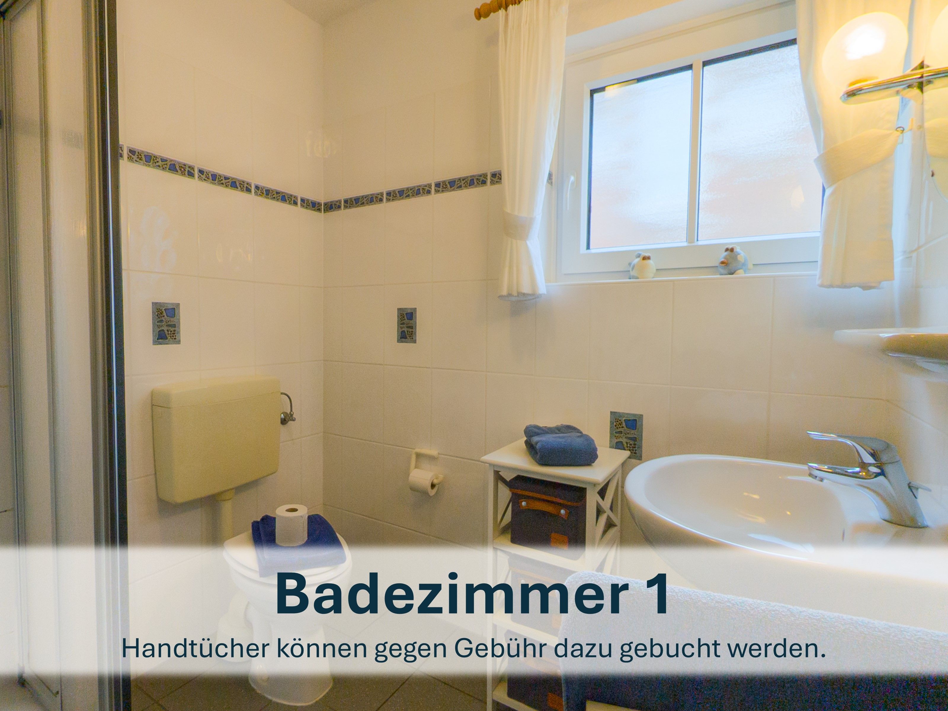 Zwischen den beiden Zimmern liegt das zweite Badezimmer mit Dusche, WC und Waschbecken.