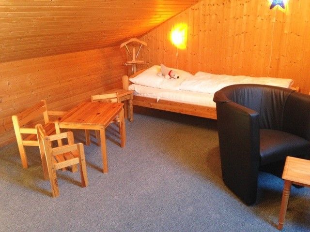 Auf den ersten Blick wirkt der Klipper mit 90 m² zwar großzügig, aber nicht sonderlich spektakulär. Max. 6 Personen (zzgl. einem Kleinkind) finden hier eine gemütlichen Wohnraum mit Kamin, eine sorgsam ausgestattete Küche mit Essbereich sowie 1 Duschbad nebst zusätzlichem separaten WC und 3 Schlafräume (einmal mit Doppelbett, zweimal mit zwei Einzelbetten). Ein zweiter Blick aber könnte Diskussionen um die Zimmeraufteilung auslösen: Von einem der drei Schlafzimmer führt eine Holztreppe zur 2. Wohnebene - ein eigenes kleines Reich für kleine und große Kinder!