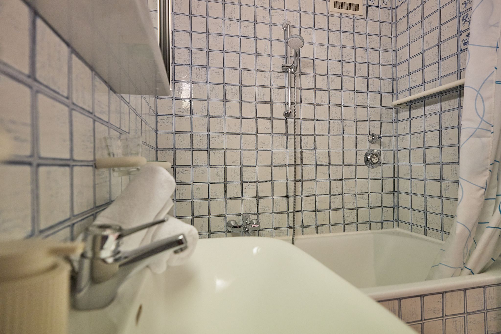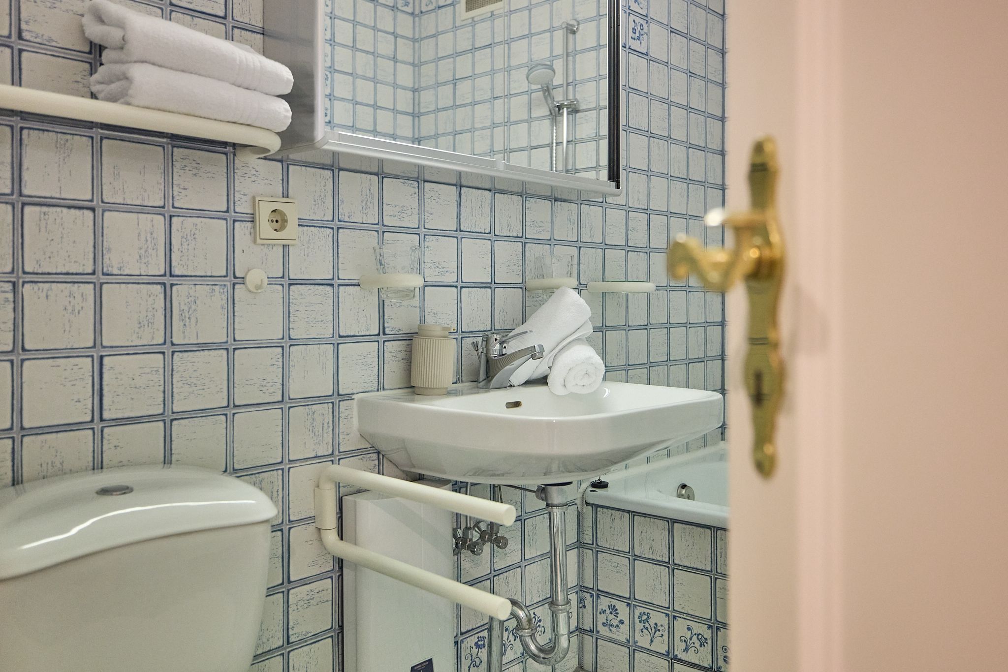 Im Flur der Wohnung finden Sie zu Ihrer rechten eine geräumige Garderobe mit viel Platz für Kleidung passend zu jeder Wetterlage. Auf der linken Seite befindet sich das Badezimmer mit Badewanne.
