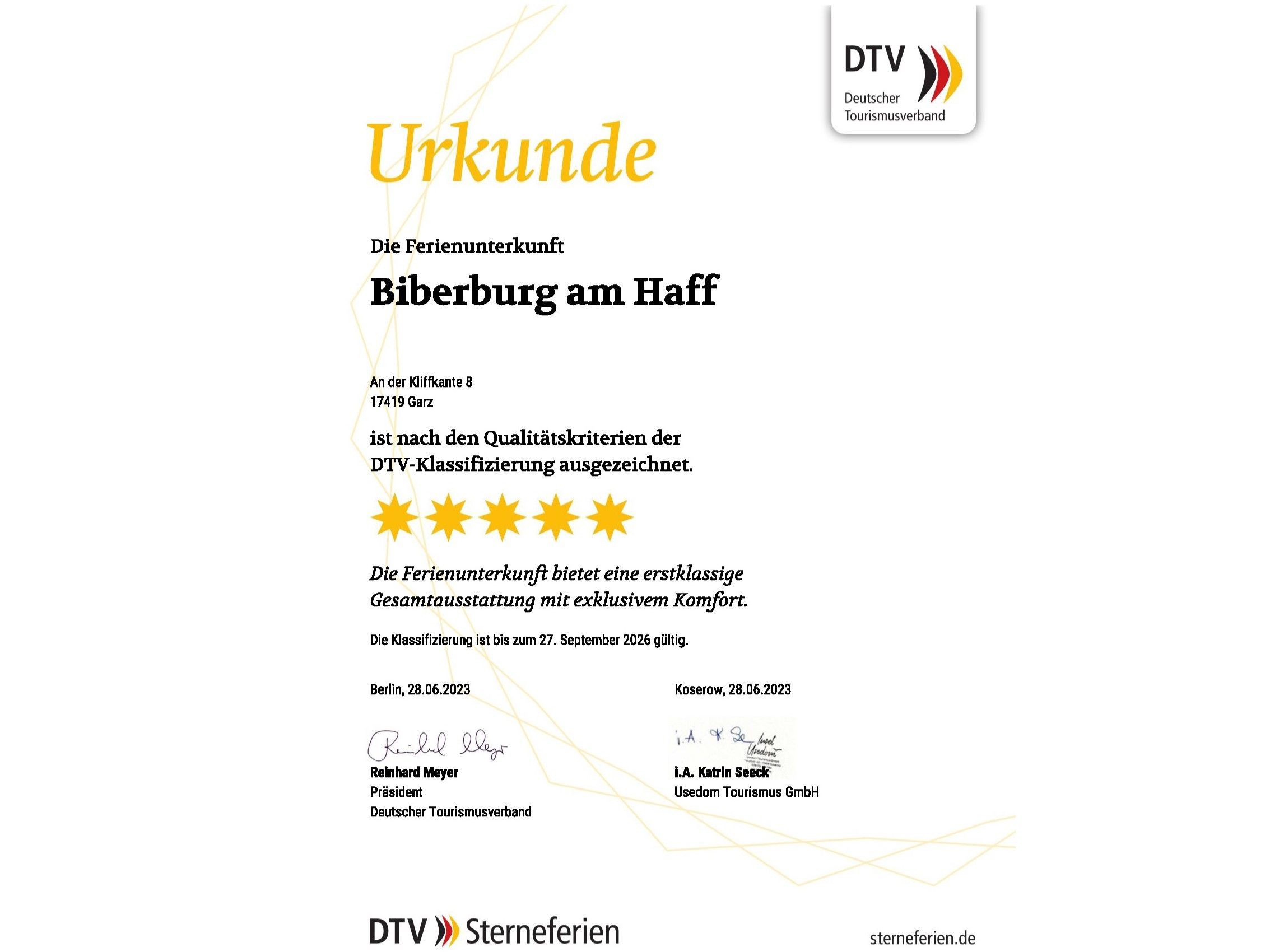 Bei Anreise ist eine Kaution in Höhe von 250,00 EUR in bar zu hinterlegen, welche am Abreisetag zurückerstattet wird, sofern das Ferienhaus ohne Schäden zurückgegeben wurde.