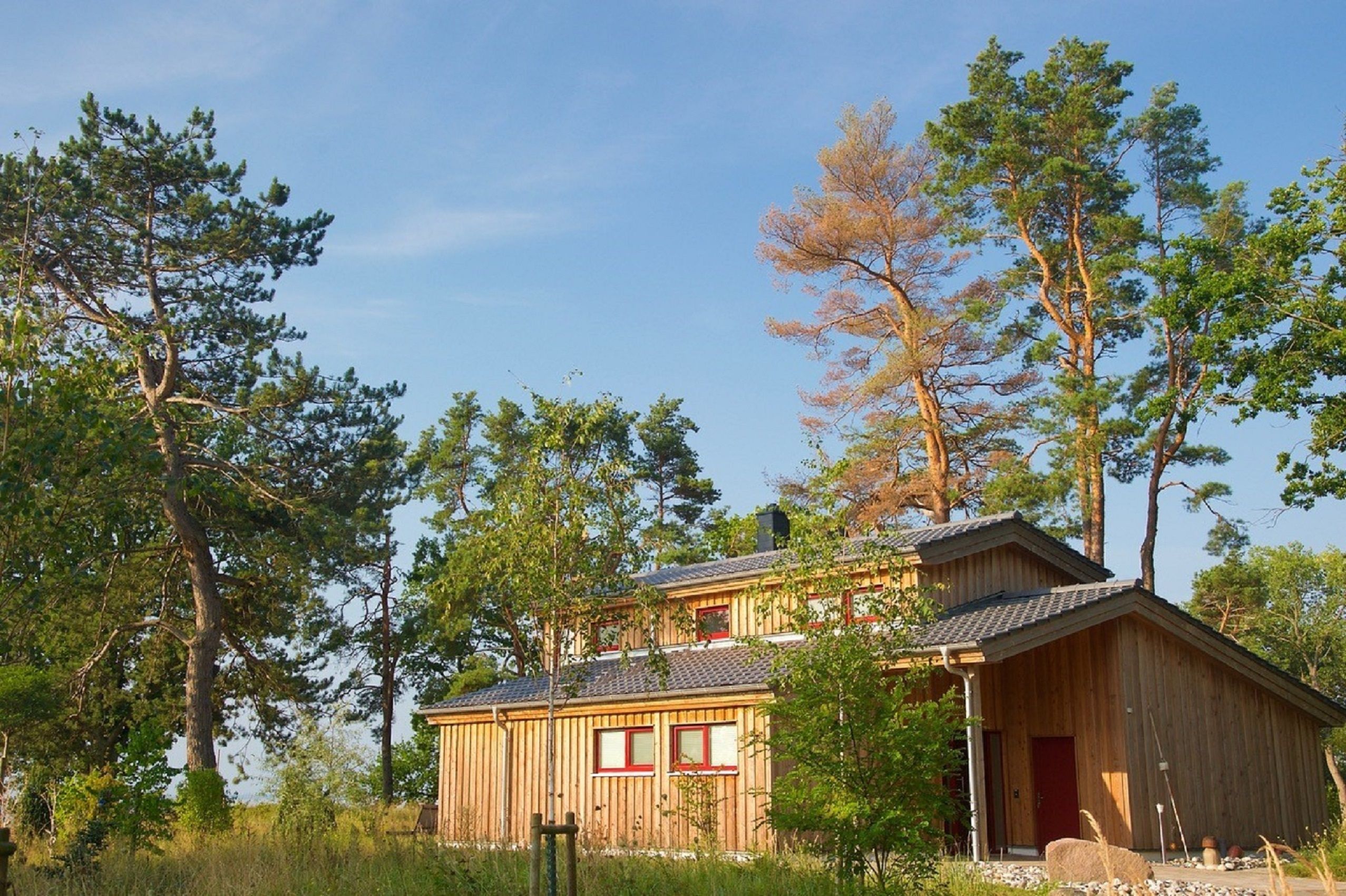 Der Achtung vor der Natur entspricht die Niedrig-Energie-Holzbauweise und ökologische Dämmung des Bauwerks.