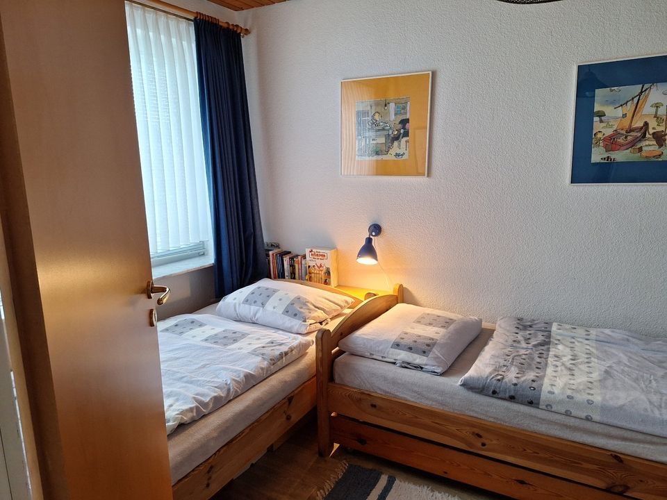 Diese einladende Erdgeschosswohnung auf 117 qm bietet optimalen Komfort und ist ideal für bis zu vier Erwachsene und zwei Kinder. Mit drei individuell gestalteten Schlafzimmern, eines mit Doppelbett, eines mit zwei Einzelbetten und ein Kinderzimmer mit zwei separaten Betten bietet die Wohnung ausreichend Raum für die ganze Familie. Auf Anfrage steht zudem kostenfrei ein Gitterbett für Kinder bis zu drei Jahren bereit.