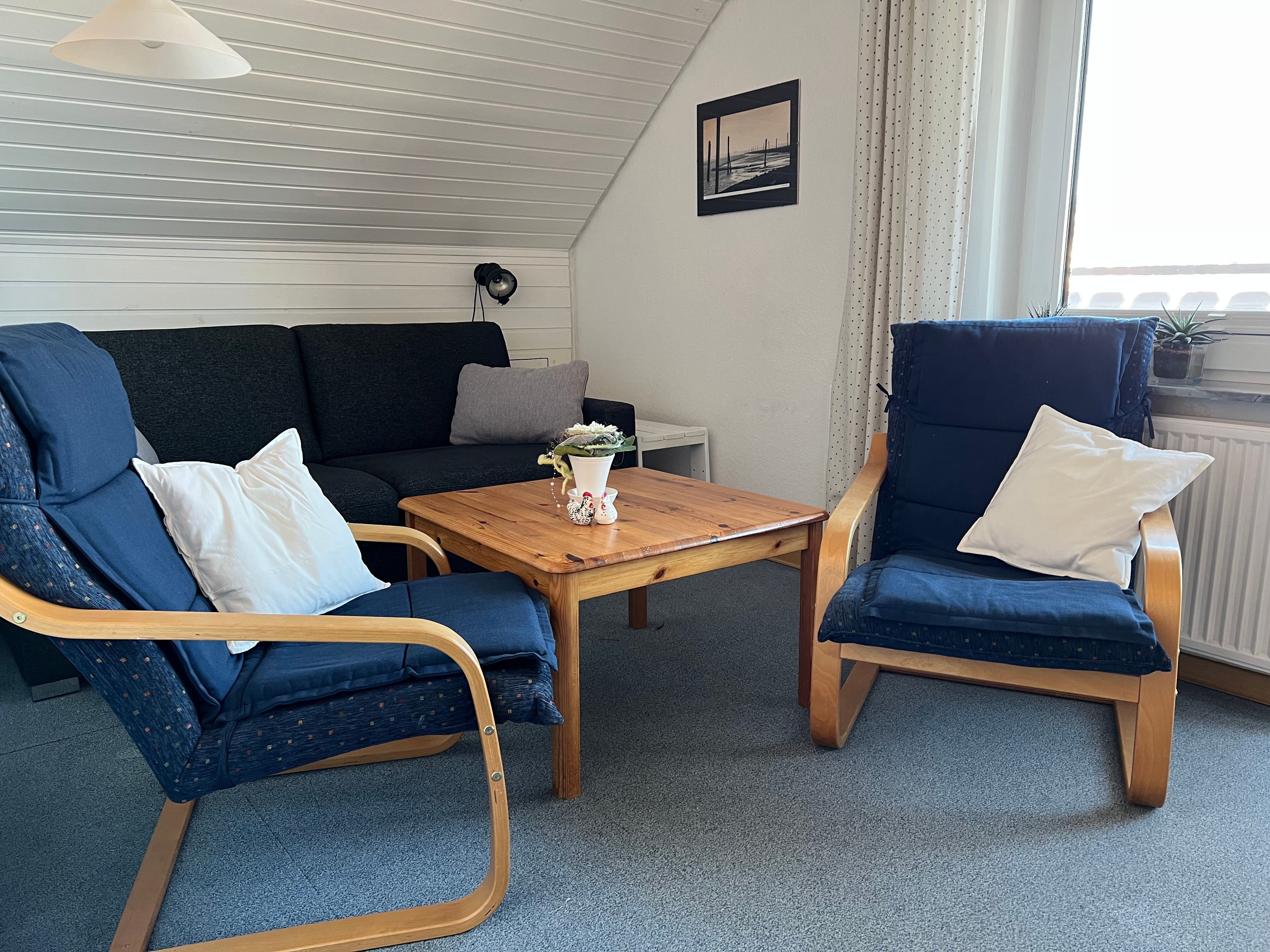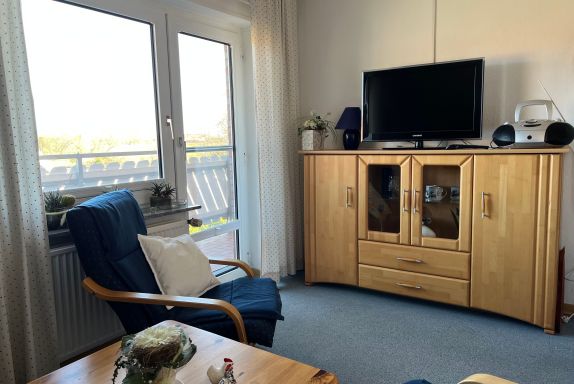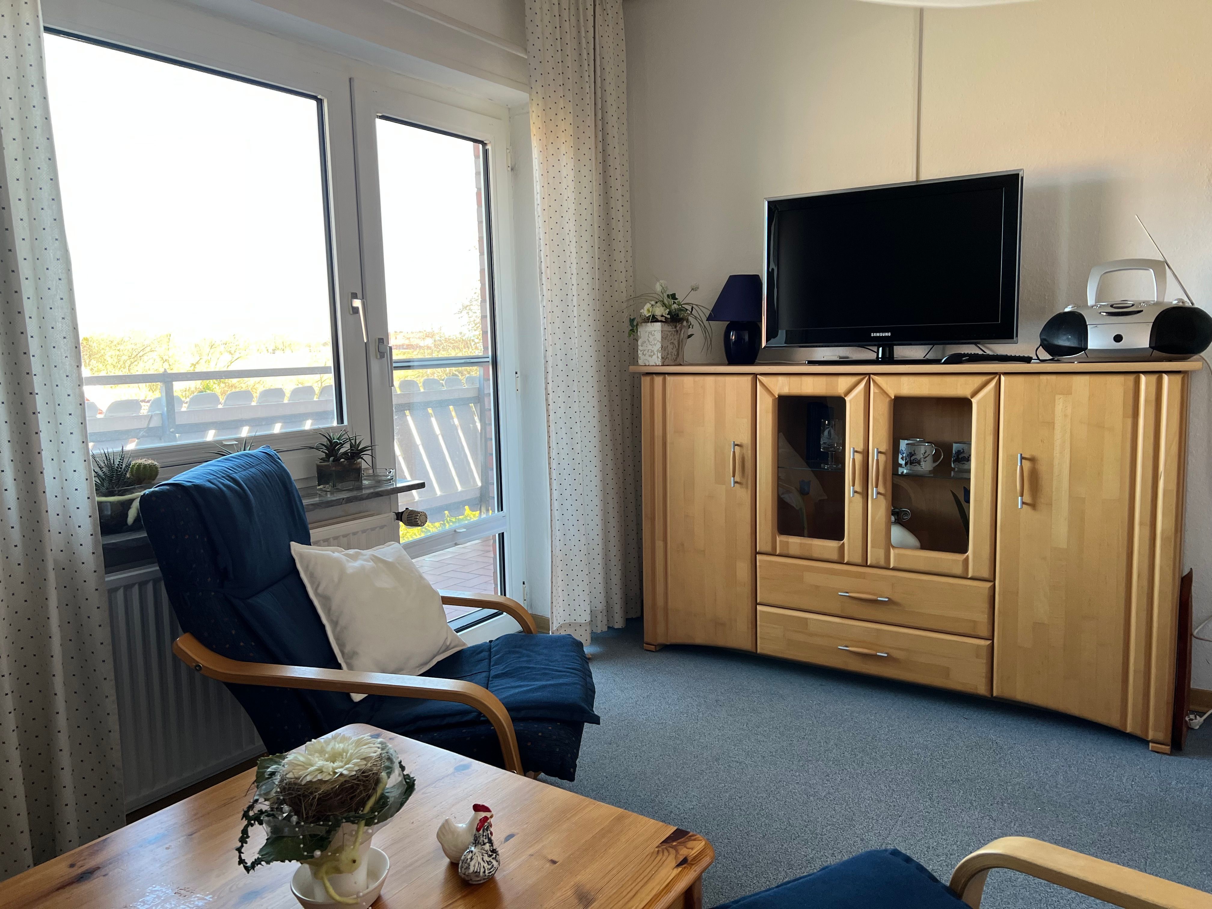 Von dem Schlafzimmer als auch dem Wohnzimmer aus führt ein großzügiger Balkon ins Freie, auf dem Sie die frische Nordseeluft genießen können. Alternativ bietet eine separate Sitzecke im Garten Raum zum Abschalten und Entspannen.