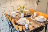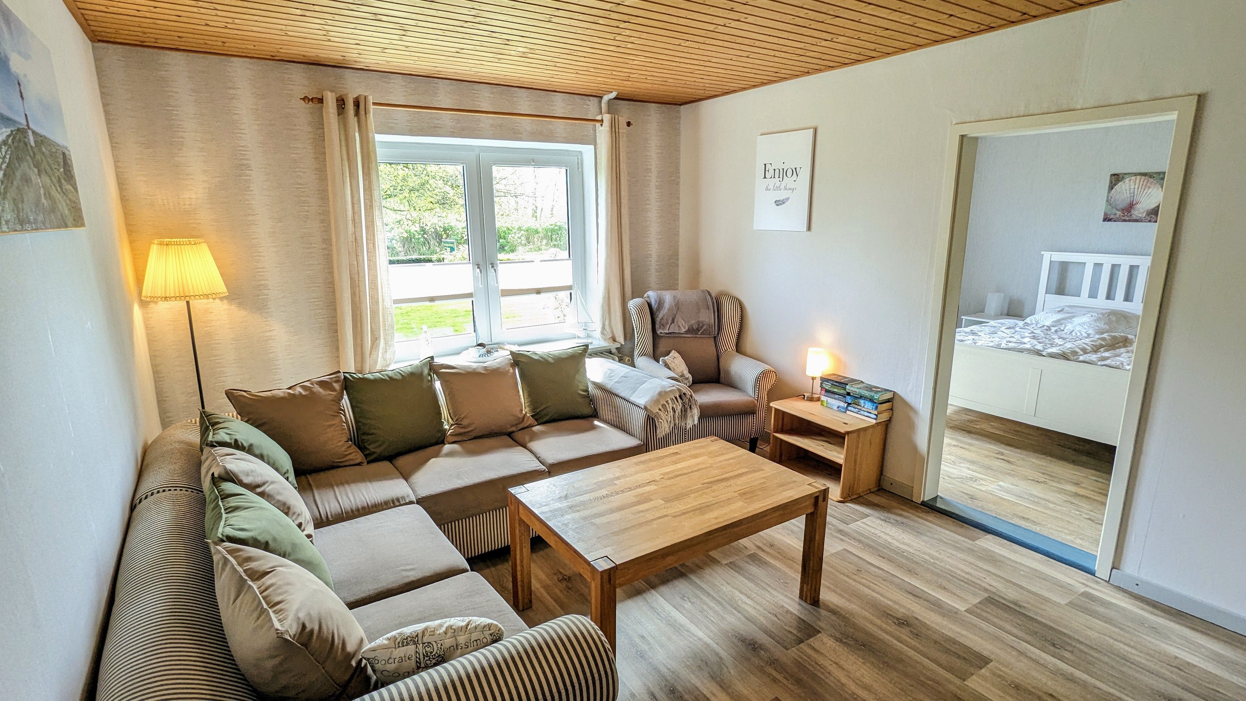 Die Wohnung Landhaus Erdgeschoss verfügt über zwei Schlafzimmer mit jeweils einem Doppelbett, im großen Schlafzimmer ist zusätzlich ein Babybett vorhanden. Weiter besteht die Wohnung aus einem Wohnzimmer mit einem großen Sofa und Sat-TV, einer komplett ausgestatteten Küche und einem Duschbad. Ein großer Garten lädt zum verweilen ein.