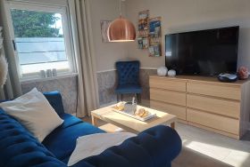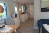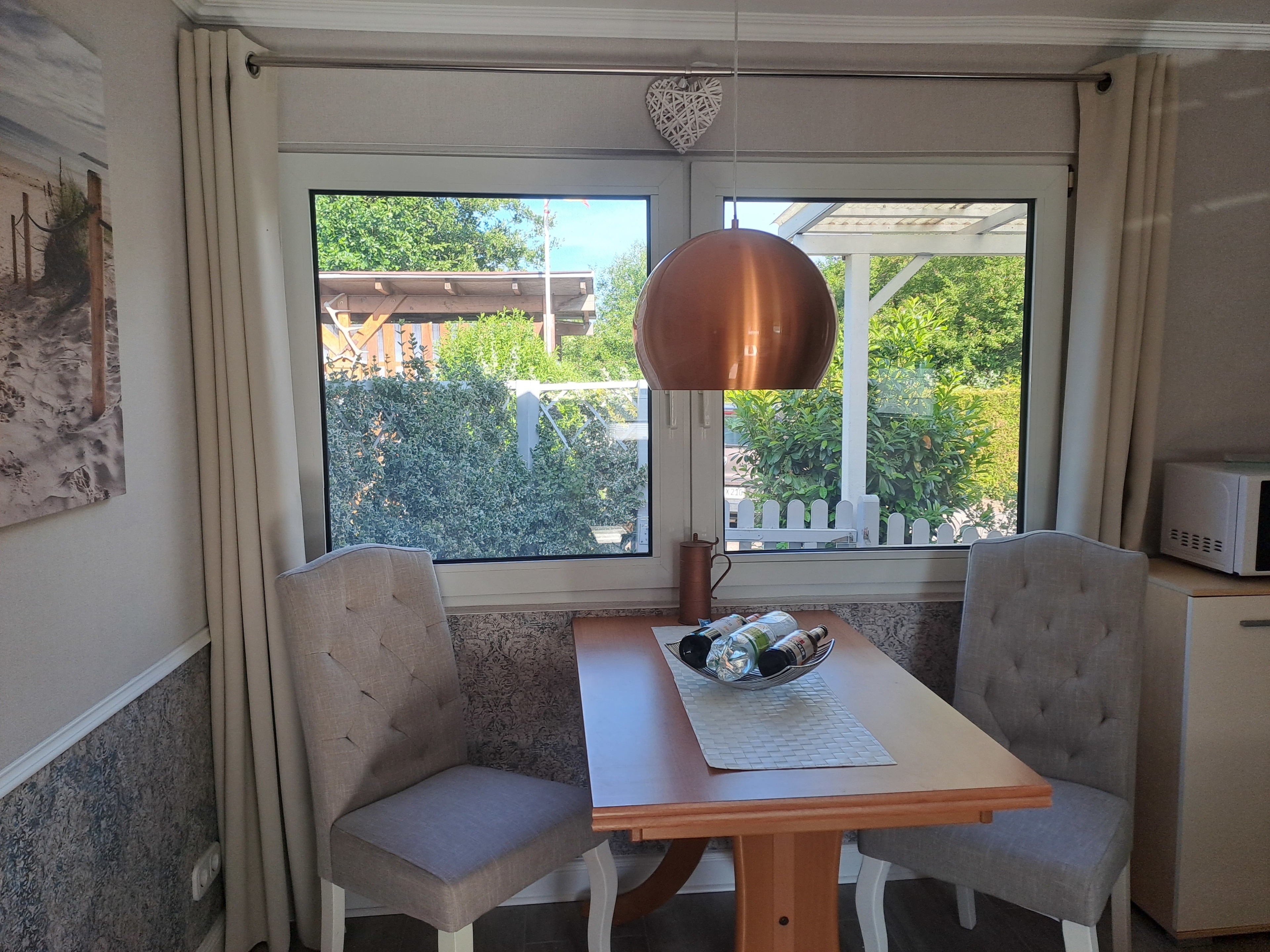 Das Ferienhaus von 30qm ist für zwei Personen ausgelegt. Für die Größe von 30qm bieten sich idealerweise maximal zwei mittelgroße Hunde an. Direkt vor dem Ferienhaus befindet sich die kleine umzäunte Terrasse mit Tisch und Stühlen. Manchmal besucht uns auf dem Grundstück unsere Draußenkatze Cleo oder auch die Nachbarskatze. Der Sommerbungalow kann von Monat März bis Anfang November gebucht werden.