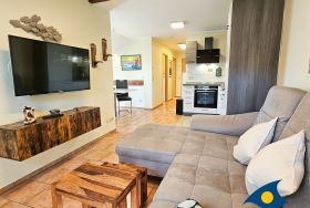 Ein besonderes Highlight: Die einzigartige Treibholz-Deko verleiht der Wohnung einen maritimen Charme und sorgt für echtes Inselfeeling. Entspannen Sie auf der Terrasse mit gemütlicher Sitzgelegenheit und lassen Sie den Abend bei einem Grillabend ausklingen.