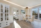 Die Ferienwohnung bietet eine moderne und komfortable Unterkunft, die perfekt für Jung und Alt geeignet ist. Sie umfasst zwei großzügige Schlafzimmer mit jeweils einem Doppelbett, ideal für erholsame Nächte. Die offene Küche ist mit hochwertigen Geräten ausgestattet, darunter ein Geschirrspüler, Elektro- und Gasherd, Backofen, Mikrowelle sowie Kühlschrank und Kaffeemaschine. Die barrierefreie Wohnung ist allergikergeeignet und bietet eine bodengleiche Dusche im Badezimmer. An zusätzlichen Annehmlichkeiten mangelt es nicht: Eine Wohnecke mit Kamin sorgt für Gemütlichkeit, während die HiFi-Anlage und der Fernseher für Unterhaltung sorgen. Für Familien stehen Brettspiele und ein Babyfon bereit. Das Gemeinschaftsangebot umfasst einen Fahrstuhl, Waschmaschine und Wäschetrockner. Die Fußbodenheizung sorgt auch in kühleren Monaten für Wärme. Sicherheitsmerkmale wie Rauchmelder und Feuerlöscher sind ebenfalls vorhanden. Ideal für einen unbeschwerten Urlaub!