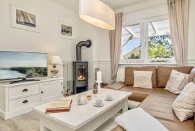 Die Ferienwohnung bietet eine geschmackvolle und allergikerfreundliche Ausstattung, ideal für einen entspannten Aufenthalt. Im großzügigen Schlafzimmer befindet sich ein Doppelbett sowie ein Einzelbett, perfekt für Paare oder kleine Familien. Das offene Design der Küche ist mit modernsten Geräten ausgestattet, darunter ein Geschirrspüler, ein Elektro-/Gasherd, ein Backofen und ein Kühlschrank, um das Kochen zu einem Vergnügen zu machen. Eine gemütliche Essecke und eine komfortable Sofalandschaft laden zum Verweilen ein. Das Badezimmer verfügt über eine bodengleiche Dusche, einen Kosmetikspiegel und eine Fußbodenheizung, die für besonders hohen Komfort sorgt. Weitere Annehmlichkeiten umfassen WLAN, einen Kamin, eine HiFi-Anlage und einen TV für entspannte Abende. Ein Parkplatz steht ebenfalls zur Verfügung. Die Wohnung bietet zudem eine Vielzahl von Brettspielen für gesellige Stunden.Durch Fliegengitter und Rauchmelder ist Sicherheit und Komfort gewährleistet.