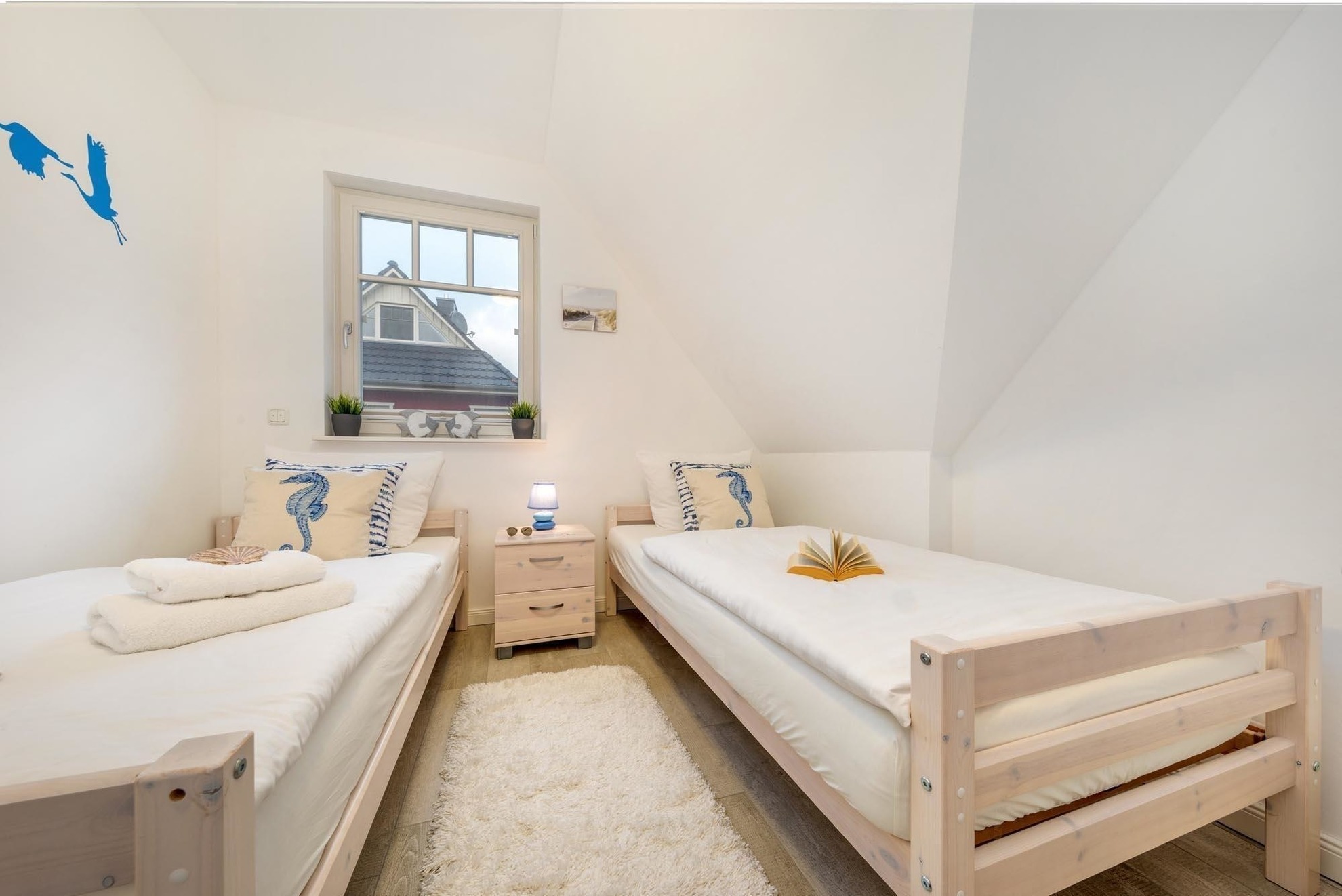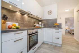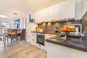 Die Ferienwohnung bietet ihren Gästen einen komfortablen Aufenthalt in zwei geschmackvoll eingerichteten Schlafzimmern, einem mit einem Doppelbett und einem mit zwei Einzelbetten. Das moderne Badezimmer ist mit einer bodengleichen Dusche und einem Haartrockner ausgestattet. Die offene Wohnküche überzeugt mit hochwertigen Geräten, darunter ein Geschirrspüler, Elektro-/Gasherd, Backofen, Mikrowelle, Kühlschrank und eine Kaffeemaschine. Eine Gefriermöglichkeit und ein Toaster runden die Ausstattung ab. Im gemütlichen Wohnzimmer sorgt ein Sofa für Entspannung, während die HiFi-Anlage und der TV für Unterhaltung bereitstehen. WLAN-Internet steht ebenfalls zur Verfügung. Die Ferienwohnung ist allergikergeeignet und bietet komfortable Fußbodenheizung sowie Fliegengitter. Für die Sicherheit sorgen Rauchmelder und ein Staubsauger. Ein Parkplatz ist ebenfalls vorhanden. Brettspiele bieten zusätzlich Abwechslung für die ganze Familie.