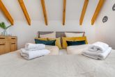 Die Ferienwohnung bietet einen großzügigen und modernen Raum mit zwei Schlafzimmern, ausgestattet mit zwei komfortablen Doppelbetten. Die offene Küche lässt keine Wünsche offen: Sie verfügt über einen Elektro- und Gasherd, einen Backofen, einen Kühlschrank, eine Geschirrspülmaschine, eine Kaffeemaschine sowie zusätzliche Küchengeräte wie Mixer und Eierkocher. Die bodengleiche Dusche im Duschbad und das separate Gäste-WC bieten hohen Komfort. Eine Fußbodenheizung sorgt für wohlige Wärme in allen Räumen. Technisch ist die Wohnung bestens ausgestattet mit WLAN, TV und einer HiFi-Anlage. Für Allergiker ist die Unterkunft geeignet, und zusätzlich stehen Brettspiele für entspannte Abende zur Verfügung. Ein Parkplatz ist ebenfalls vorhanden. Die Wohnung bietet alles, was für einen entspannten Aufenthalt erforderlich ist – ideal für die ganze Familie.