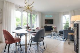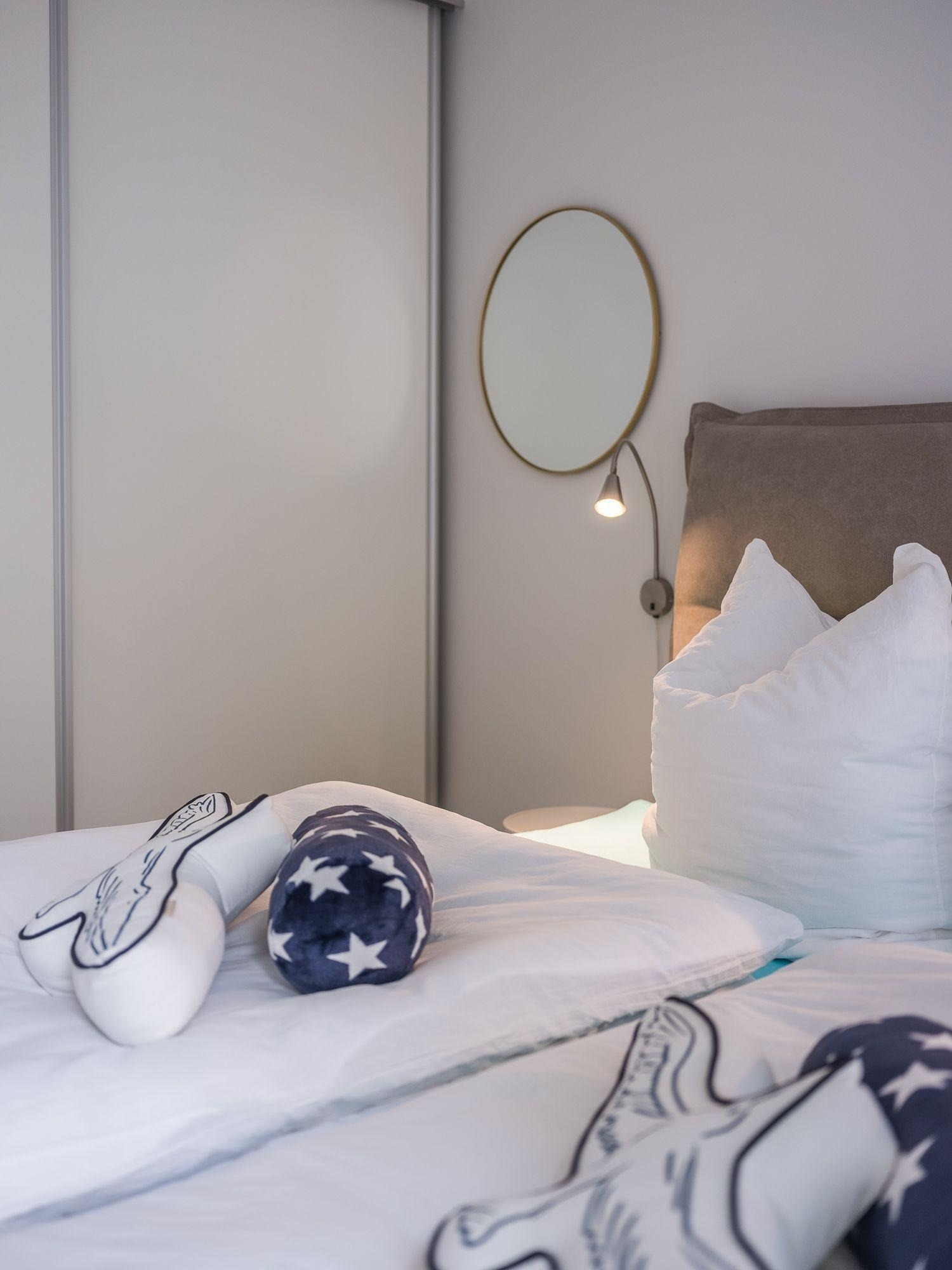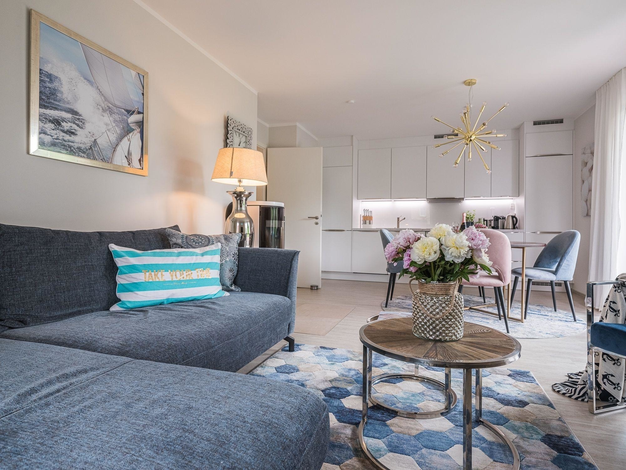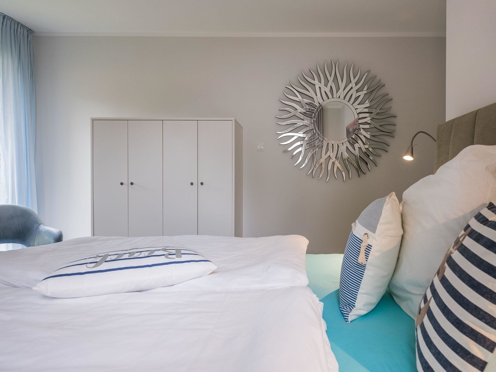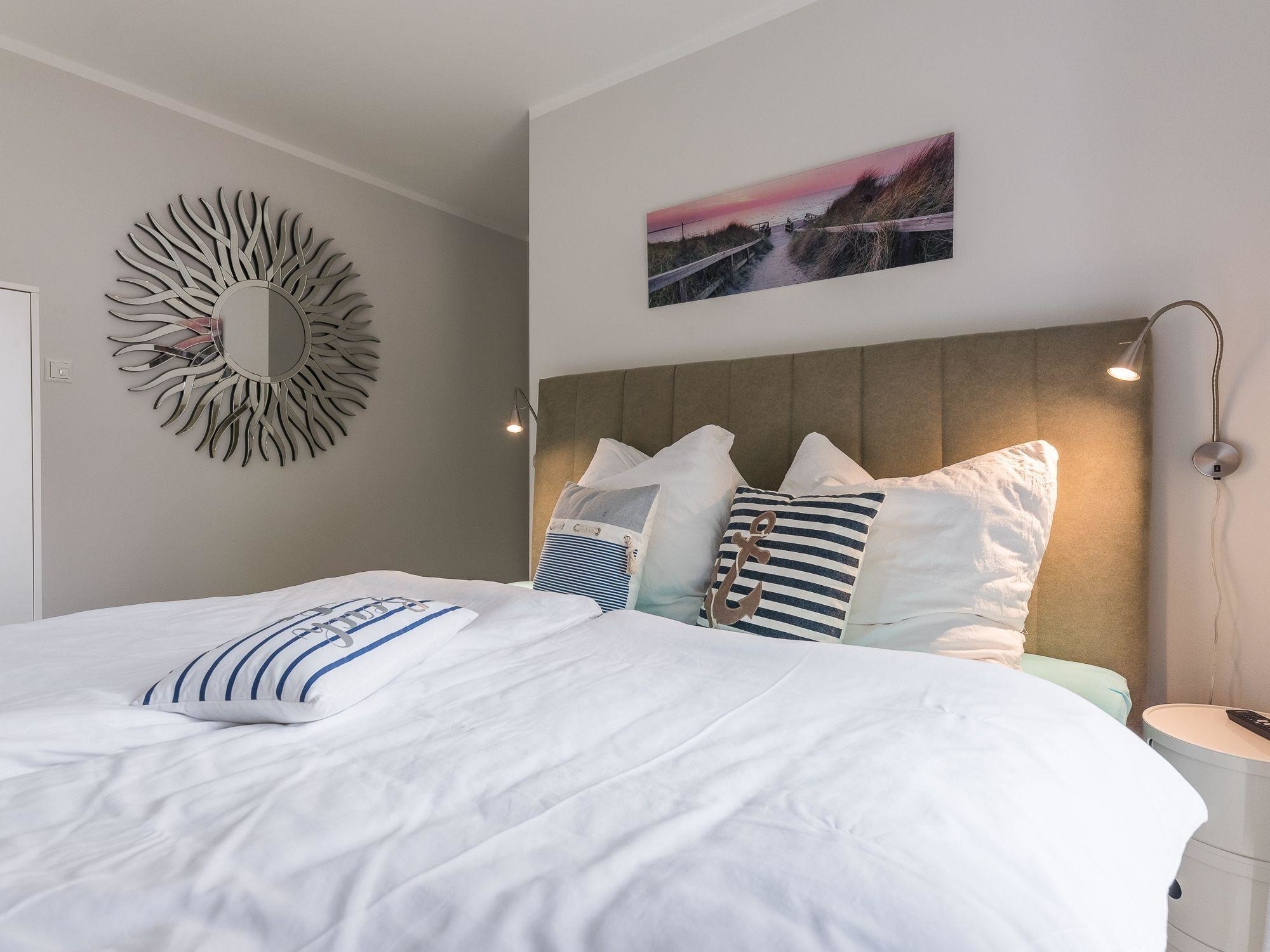 Die Ferienwohnung bietet durch ihre großzügige Gestaltung einen idealen Rückzugsort für erholsame Tage. Zwei einladende Schlafzimmer mit jeweils einem Doppelbett garantieren einen erholsamen Schlaf. Die offene Küche ist mit modernen Geräten wie Geschirrspüler, Elektro-/Gasherd, Backofen, Mikrowelle, Kühlschrank, Kaffeemaschine und weiteren Annehmlichkeiten ausgestattet, sodass das Kochen zum Vergnügen wird.